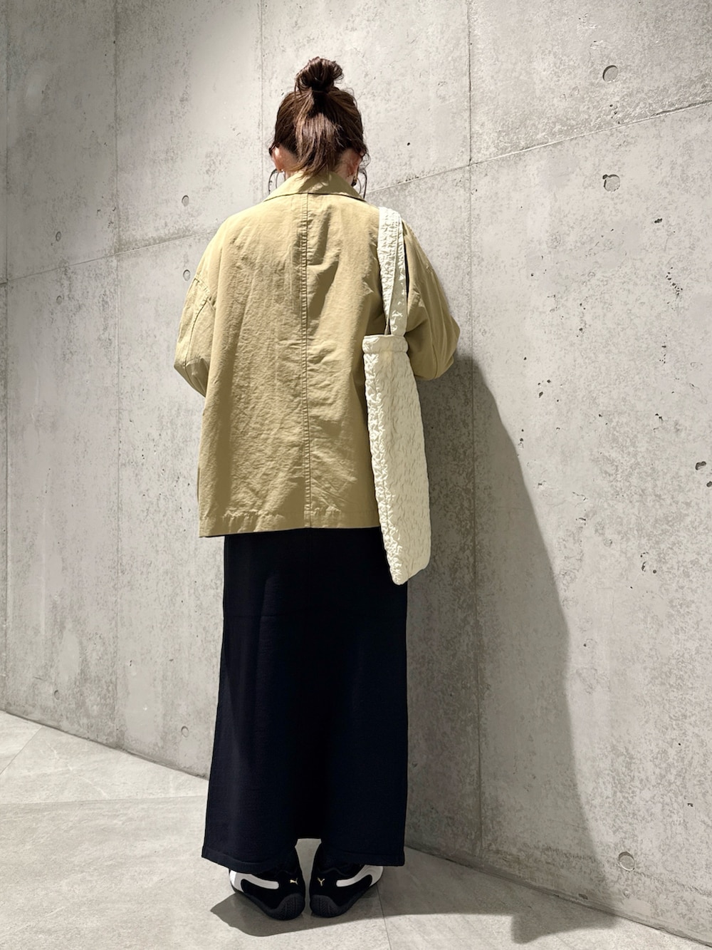 アーム周りや、身幅は適度にゆとりをもたせており、中に着込めるサイズ感です。
