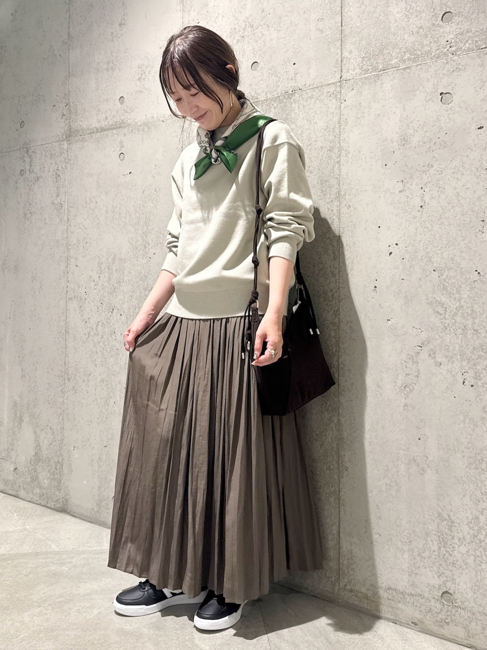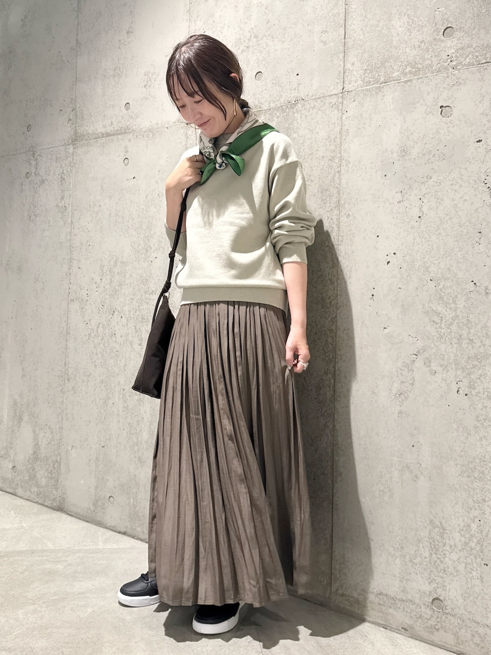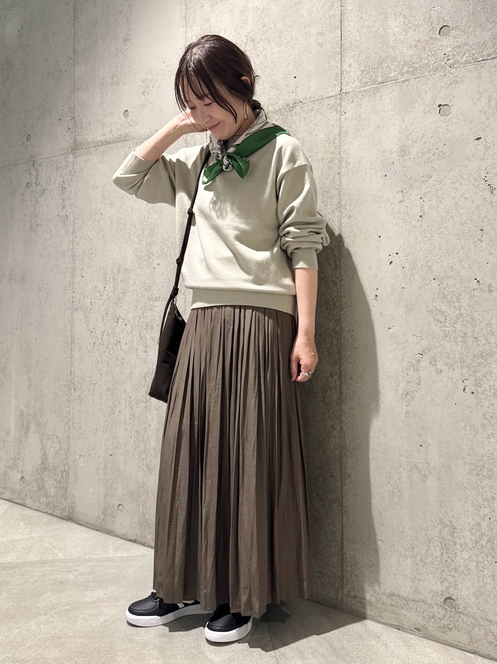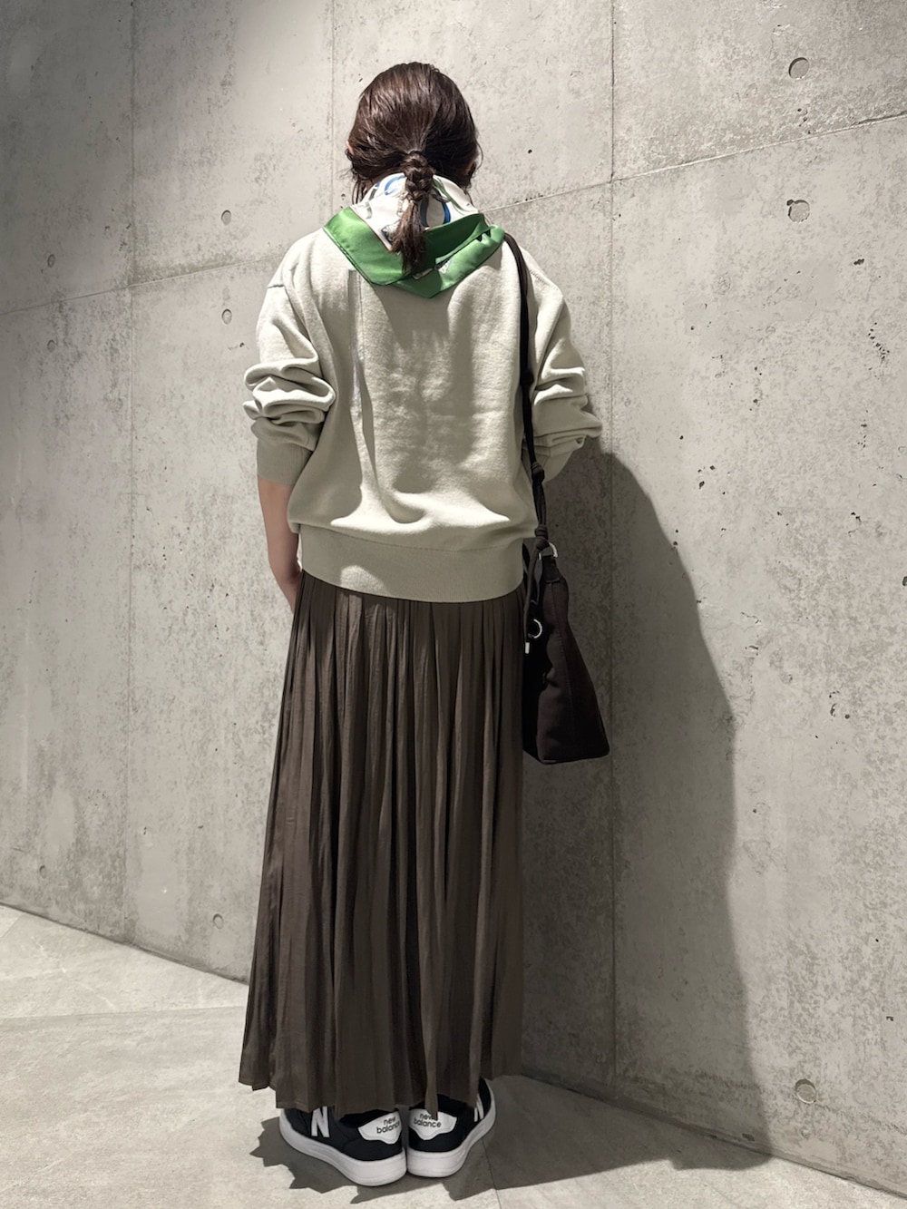 今回は、プリーツスカートと合わせて、フェミニンなカジュアルコーディネートです。