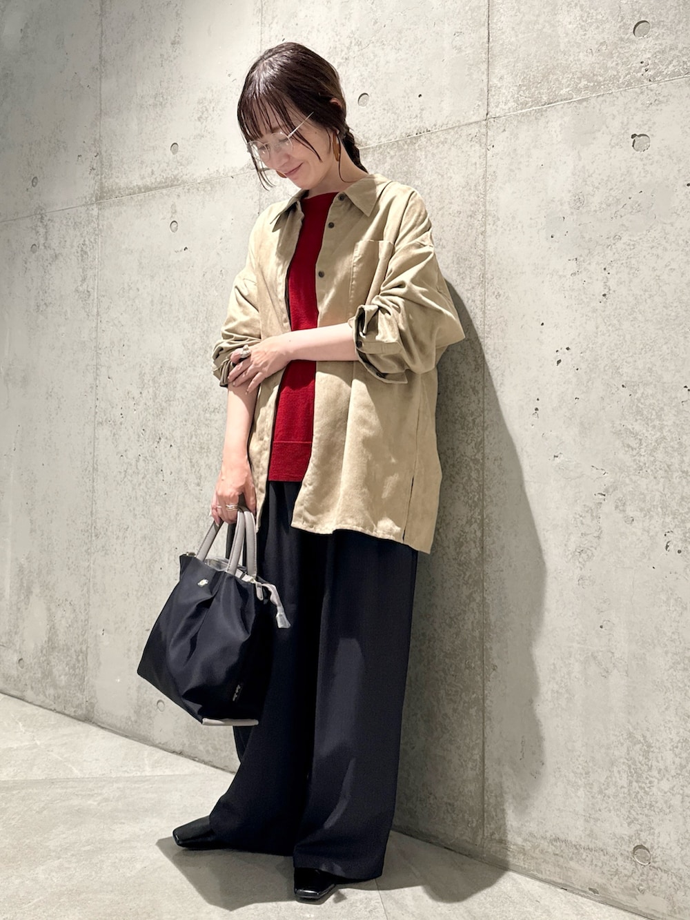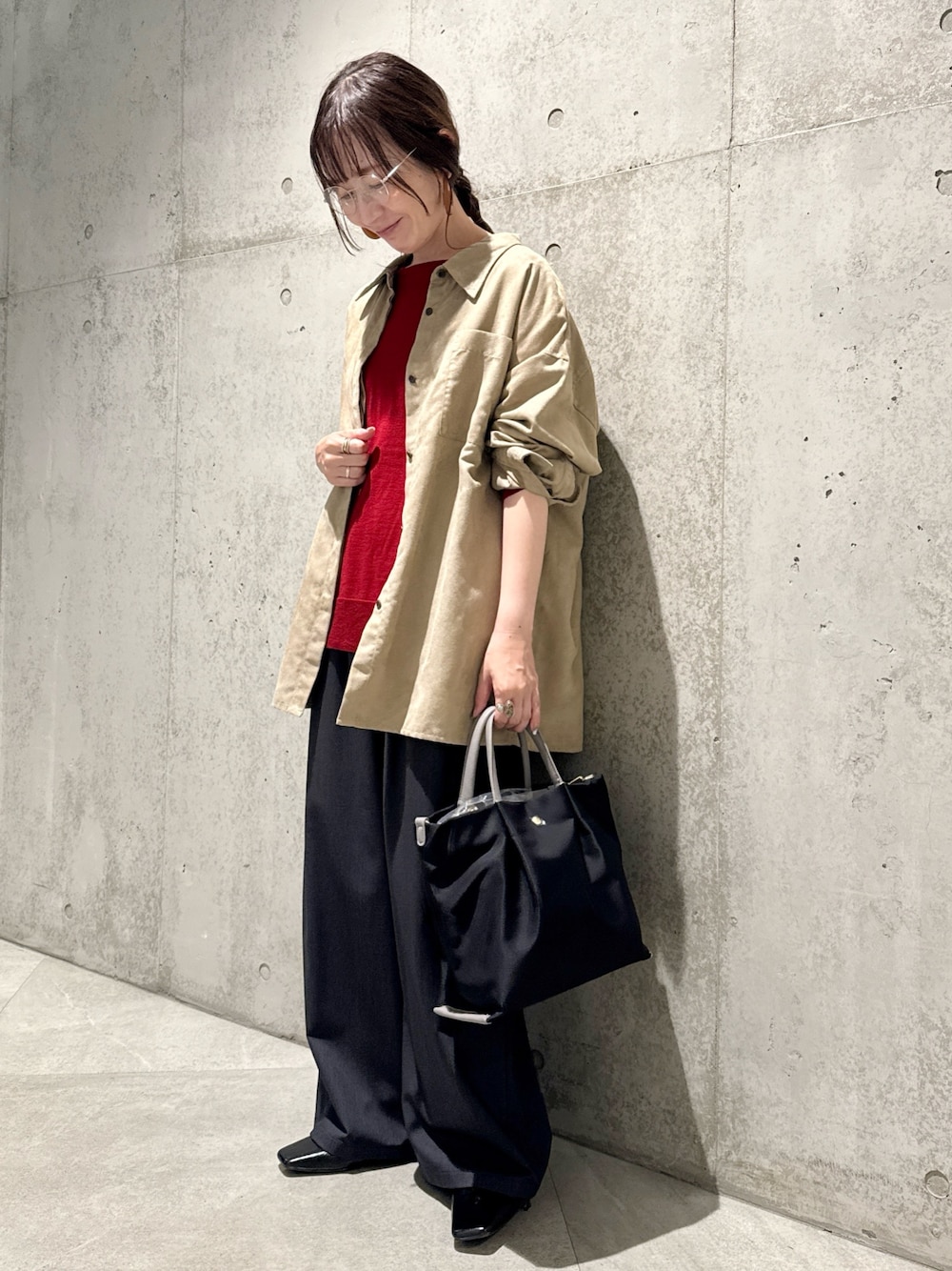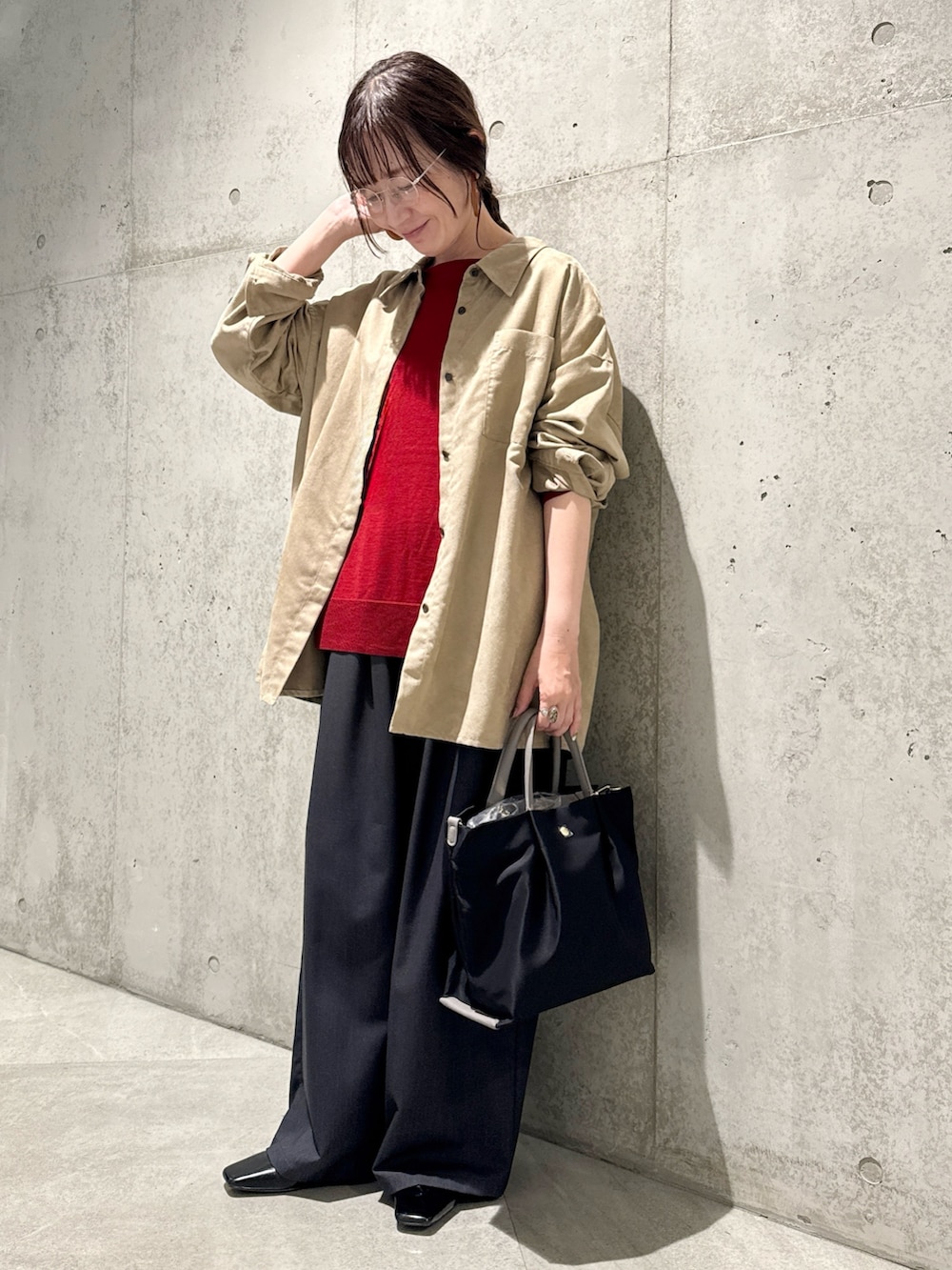 今回は、レッドカラーのニットを差し色にした、きれいめカジュアルコーディネートです。
