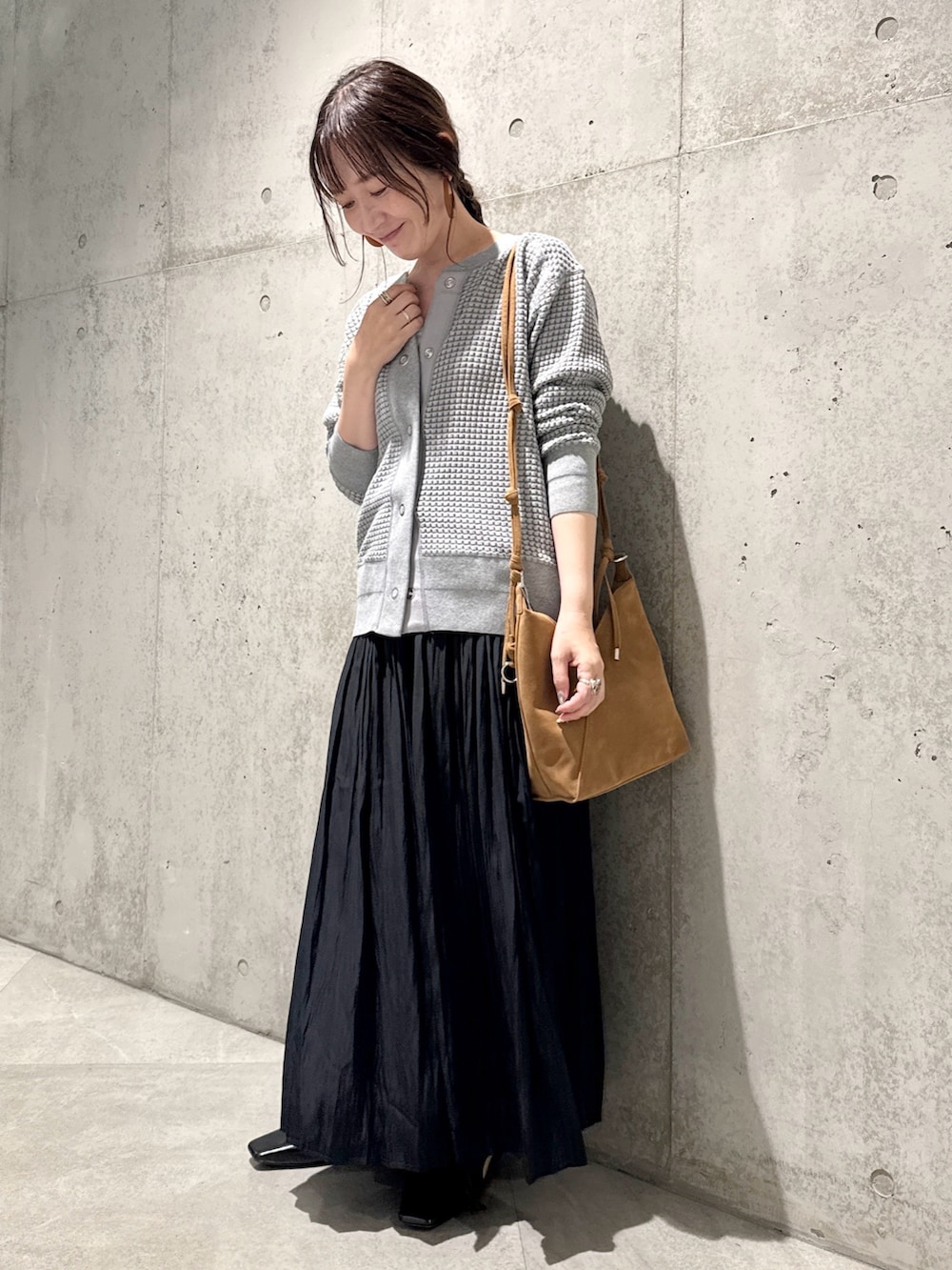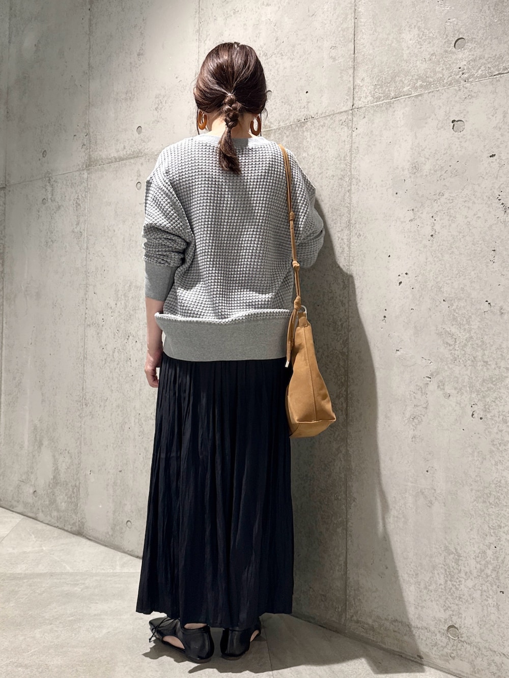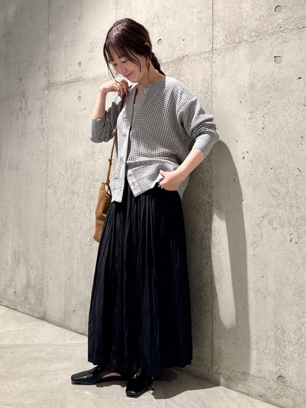今回は、プリーツスカートを合わせて、女性らしさをプラスしてみました。