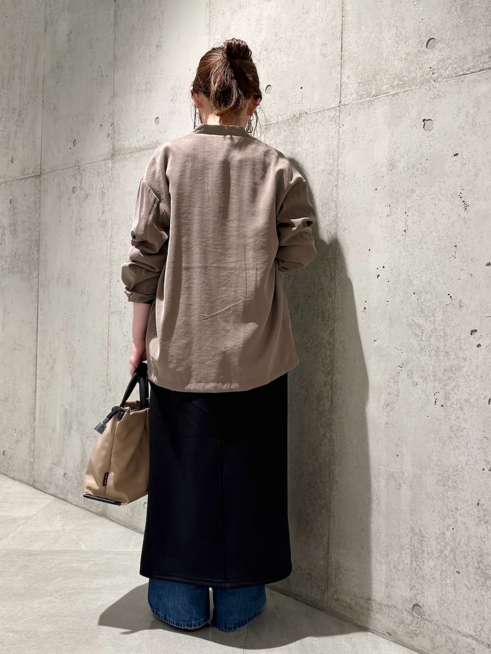 今の時期はTシャツに、寒くなりましたら、ニットの上にと、幅広く重ねやすいゆとりのあるサイズ感です。
