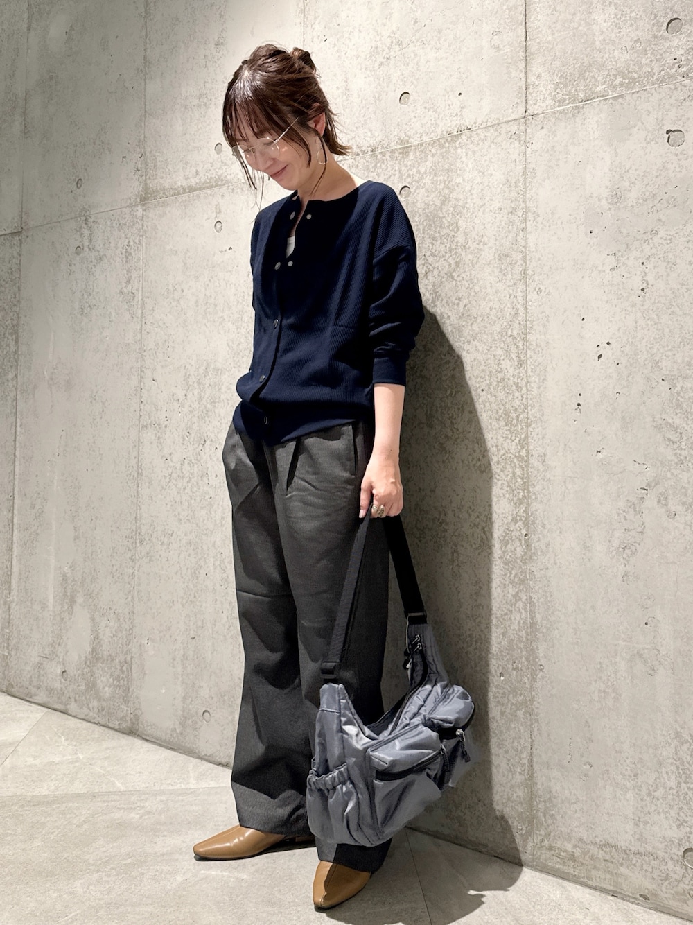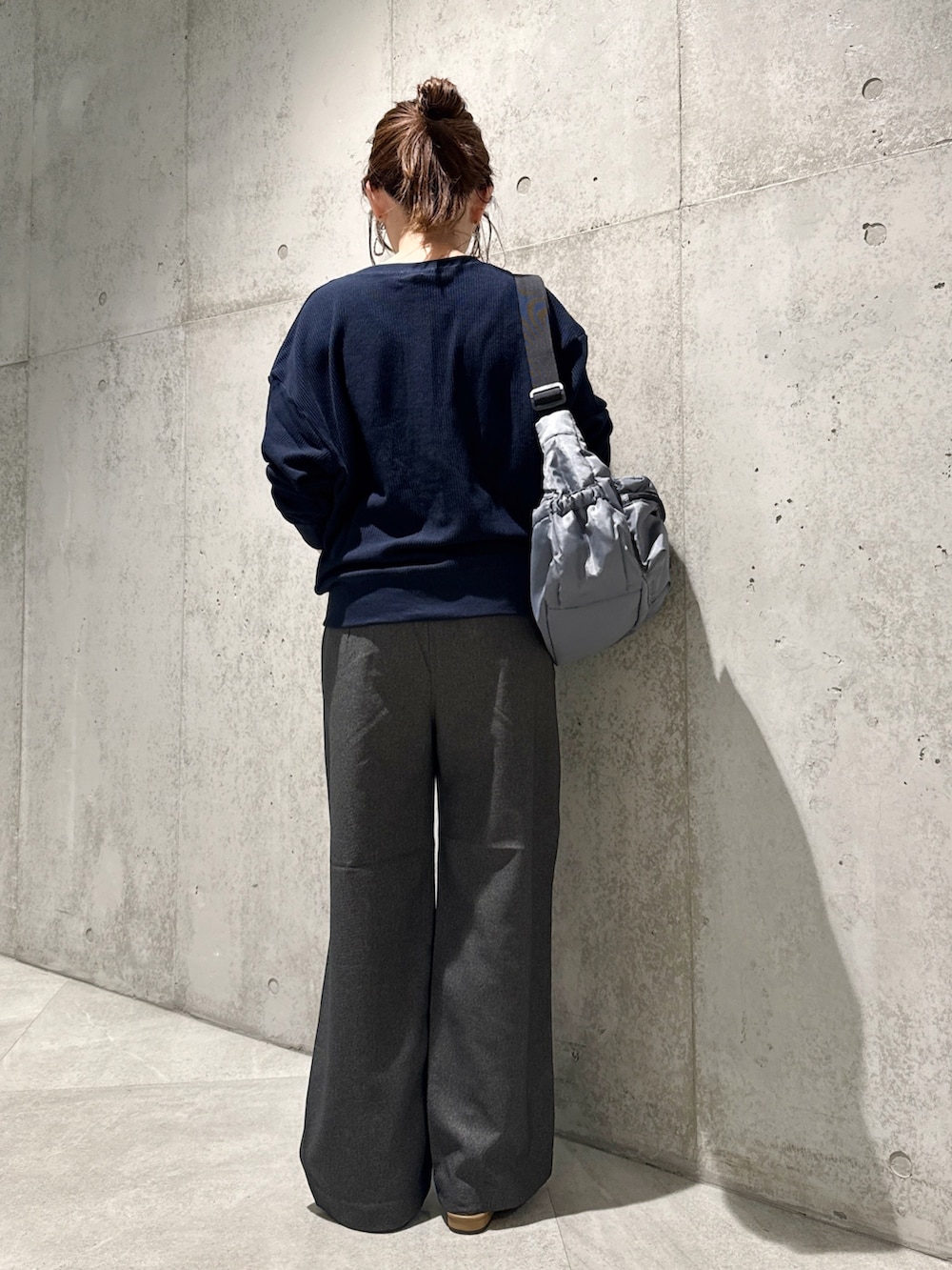 今回は、イージーパンツと合わせたキレイめコーディネートです。