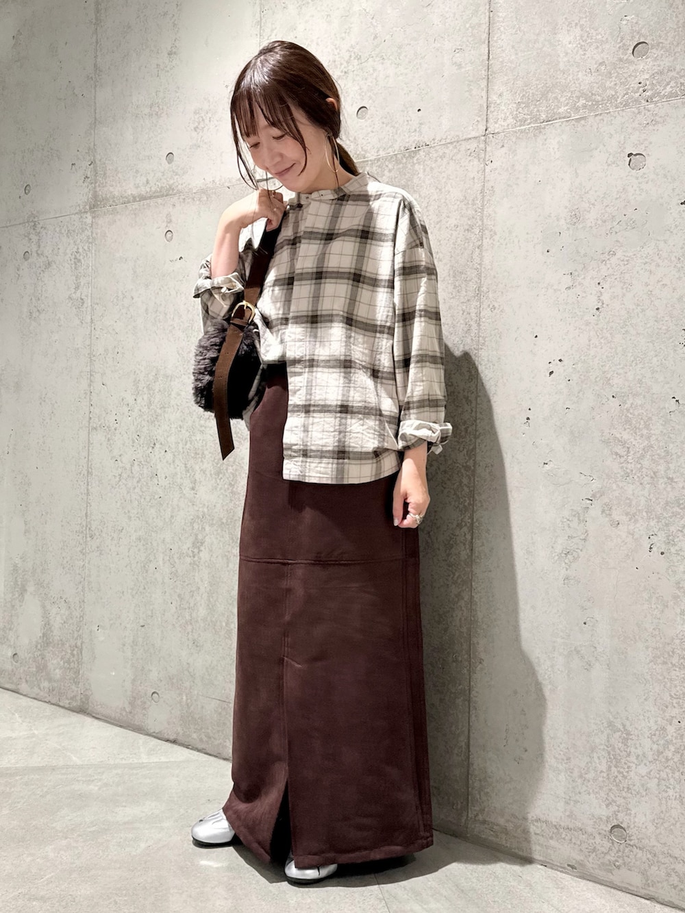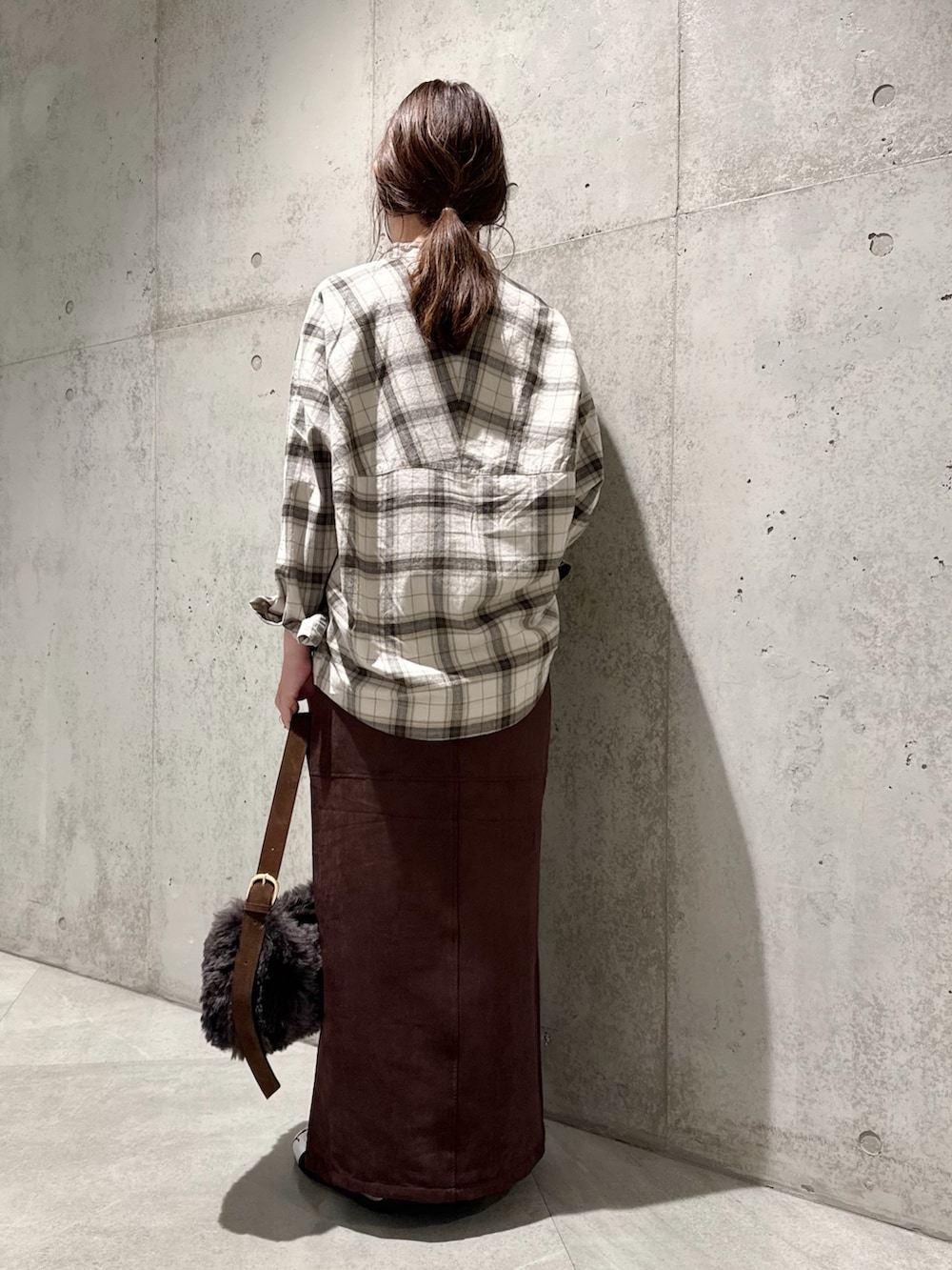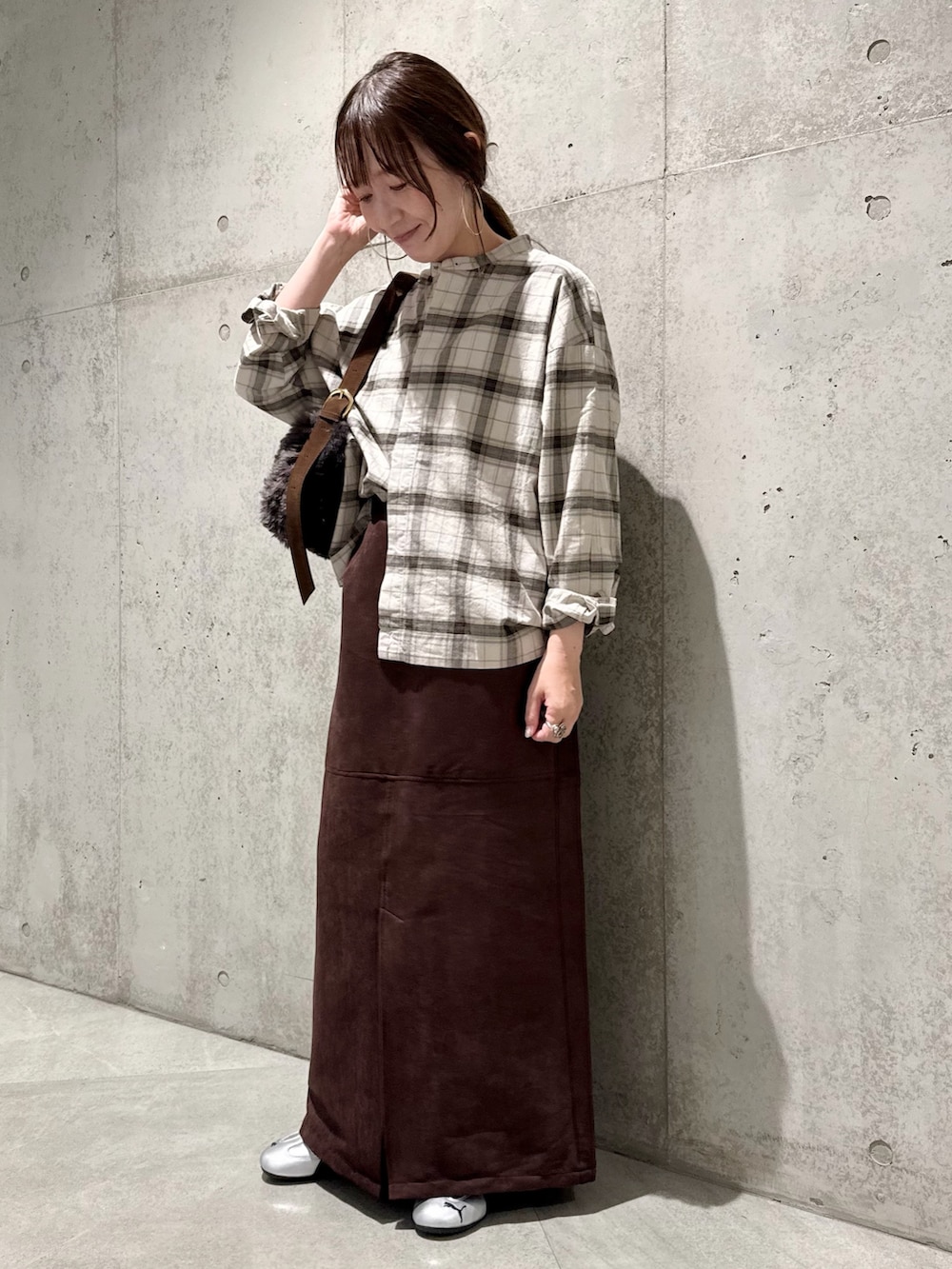 今回は、フェイクスエードのスカートと合わせて、秋らしいコーディネート。