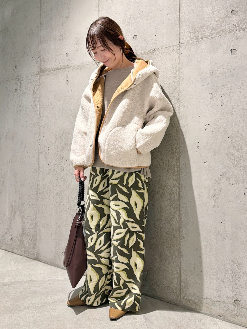 今回は、大人な印象の柄のパンツを合わせてみました。