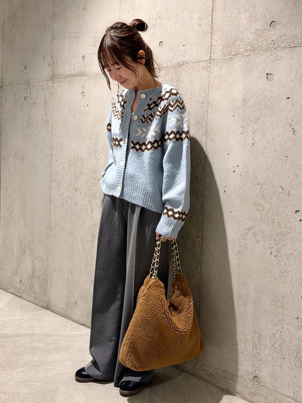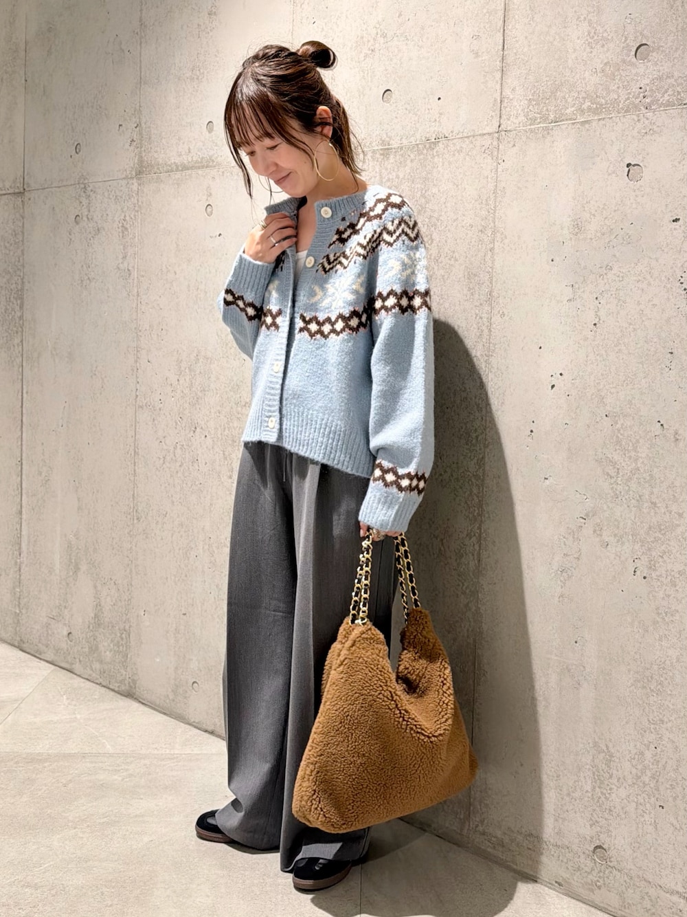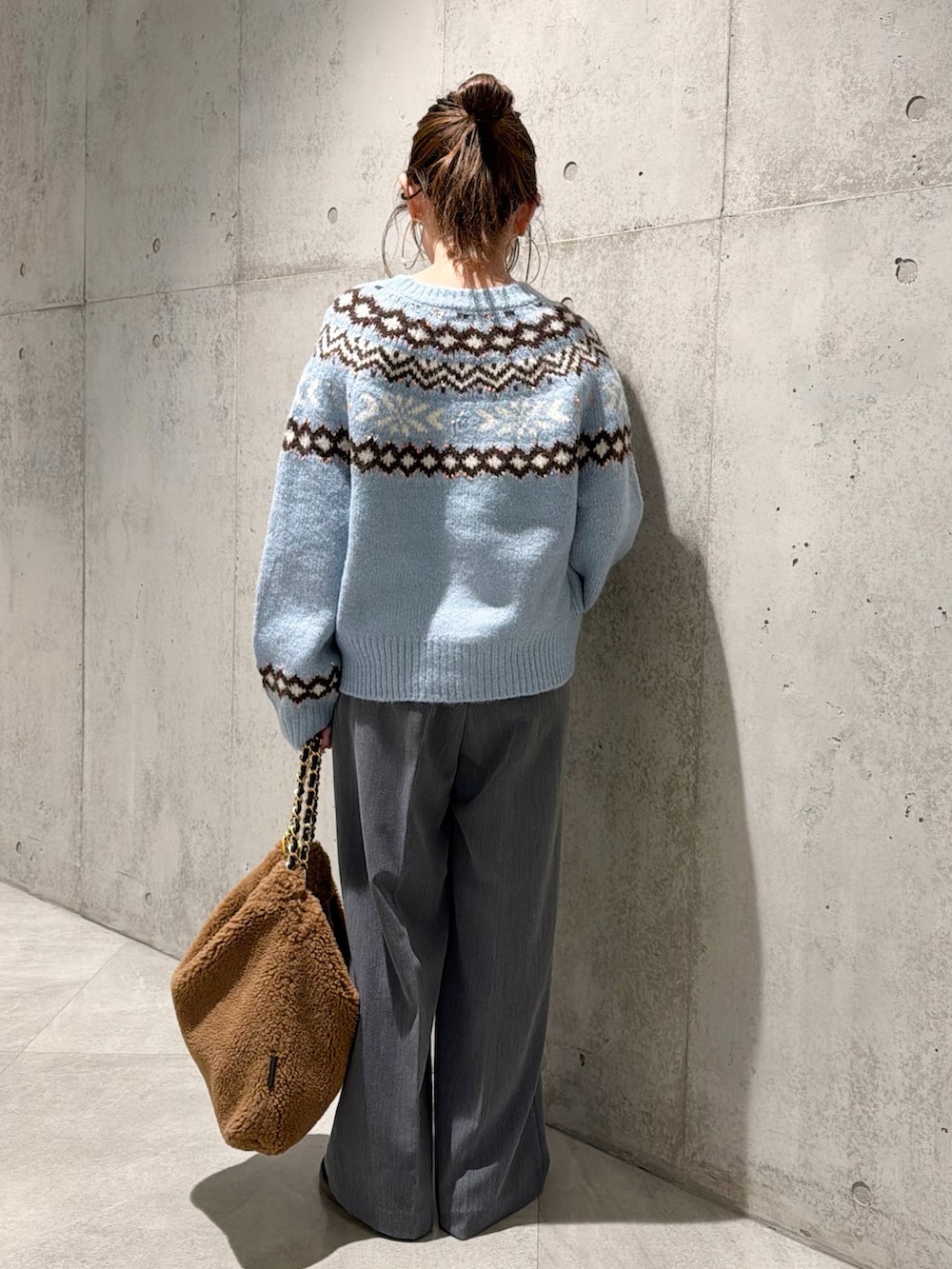 ウール混のやや毛足のある糸が使われており、あたたかみがありつつも軽い着心地です。