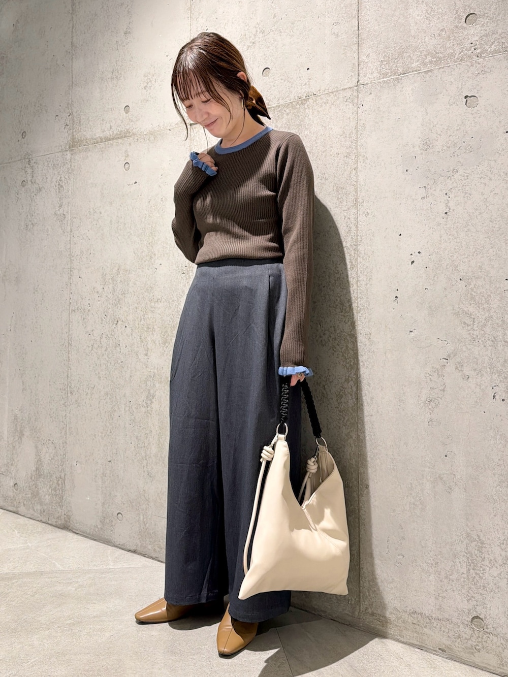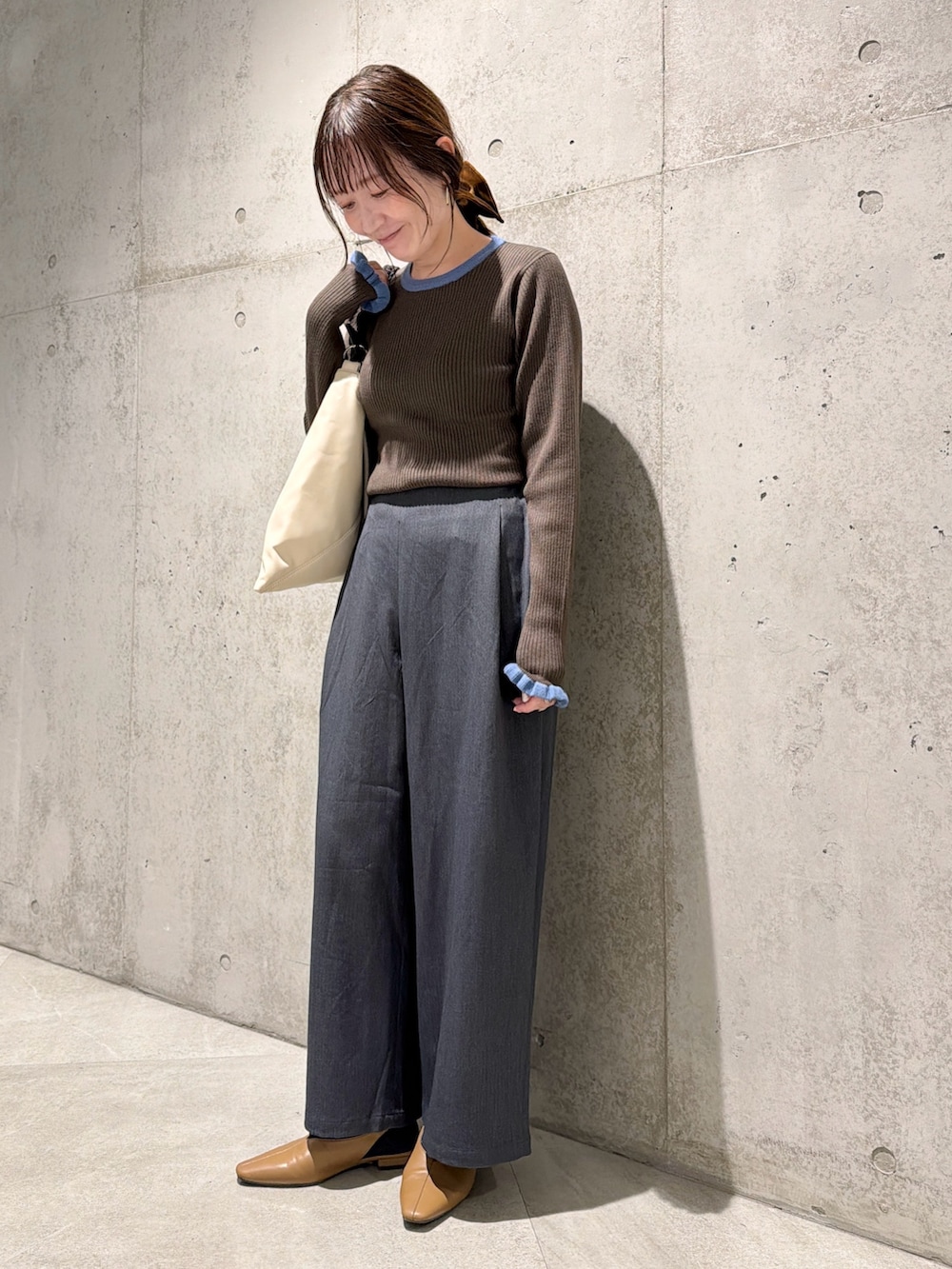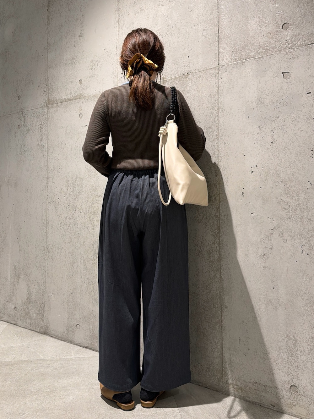 今回は、9分丈に太めのシルエットが特徴的なパンツと合わせた、キレイめカジュアルコーディネート。