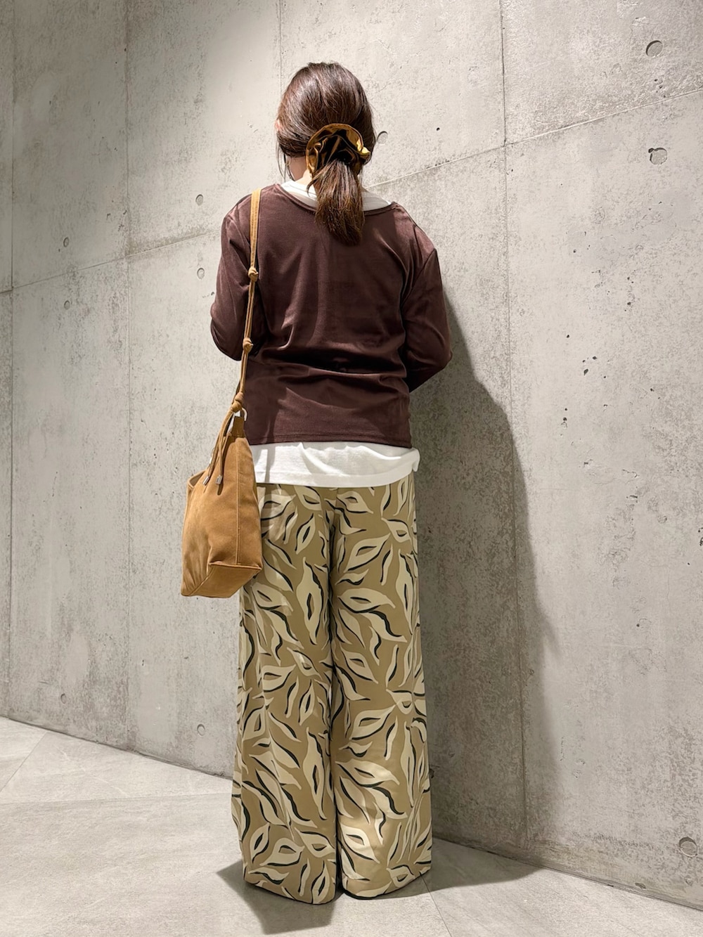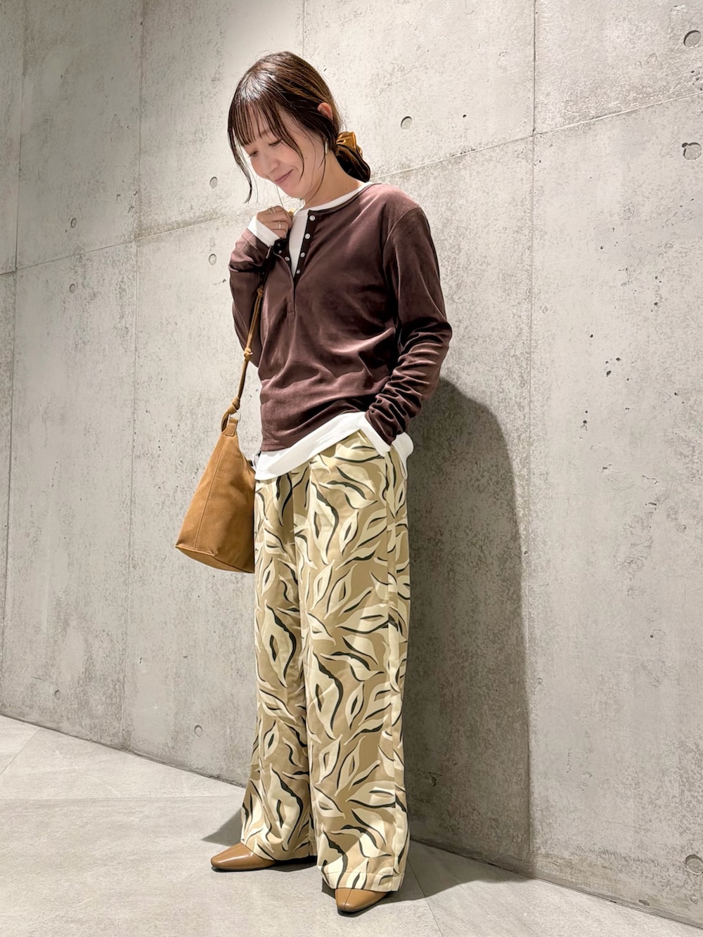 パンツは、大人カジュアルにぴったりな、柄のパンツを合わせてみました。
