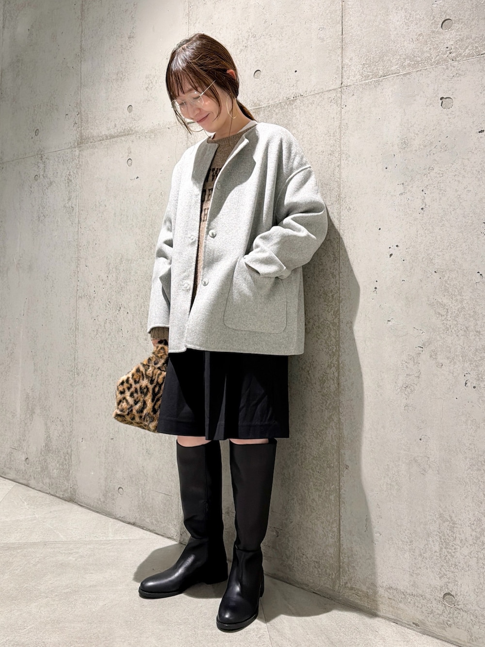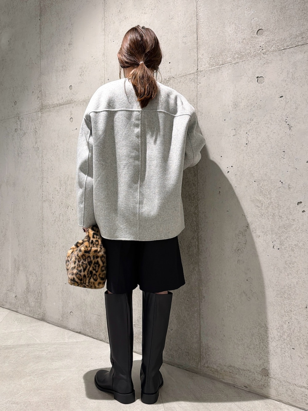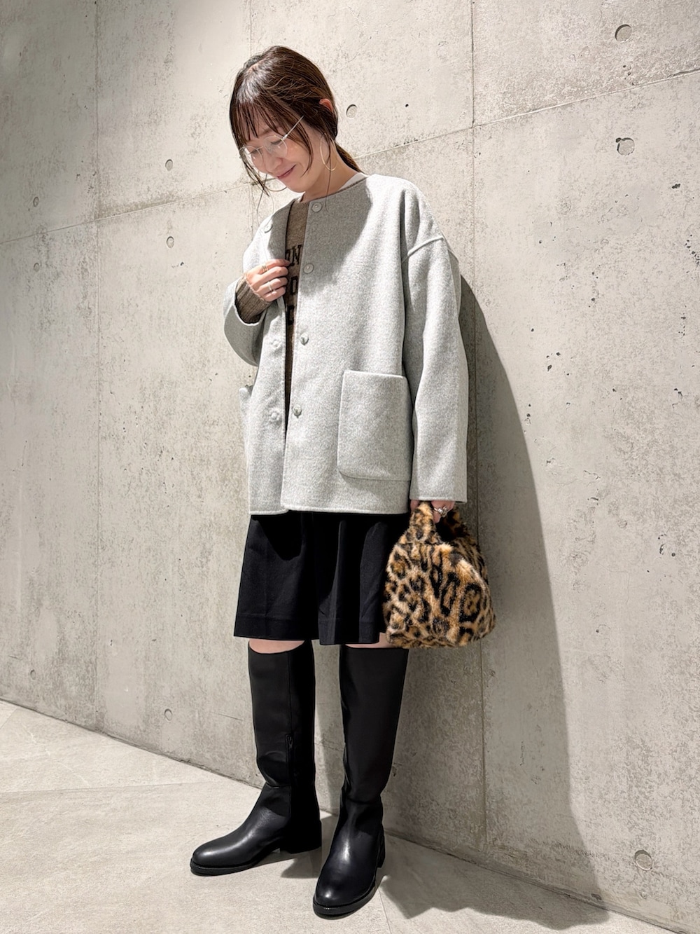 ファーバッグと、ロングブーツで、季節感のあるスタイルに。