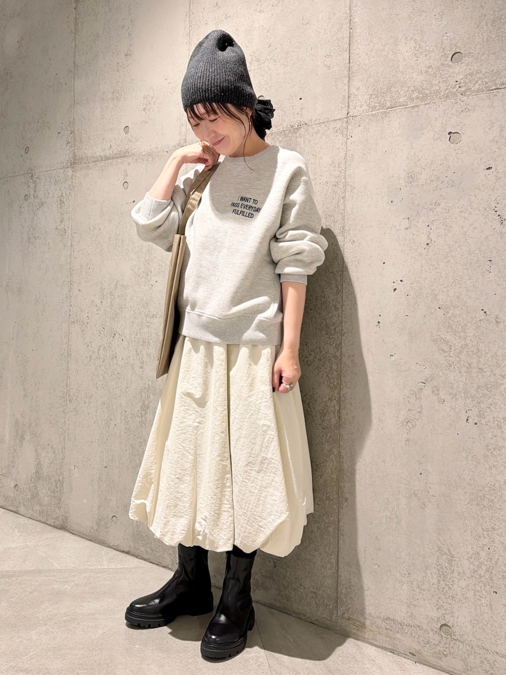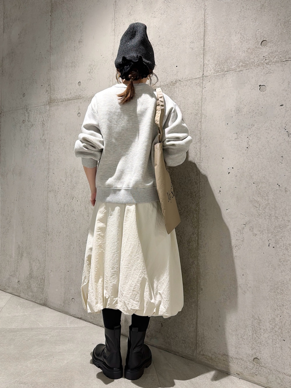 今回は、バルーンシルエットが特徴的なスカートと合わせた、大人カジュアルコーディネートです。