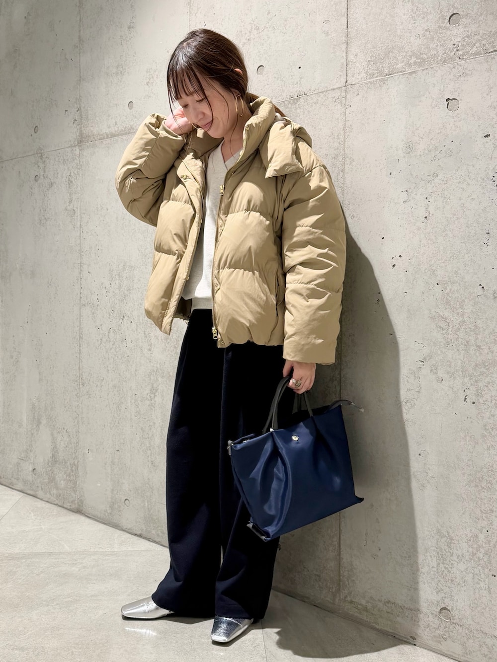 ファスナーや金具はゴールドなので、カジュアルすぎず上品な印象に。