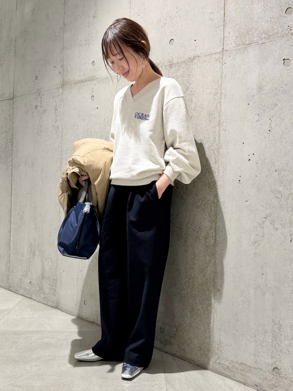 今回は、スウェットにイージーパンツを合わせて、リラックス感のあるカジュアルコーディネートです。