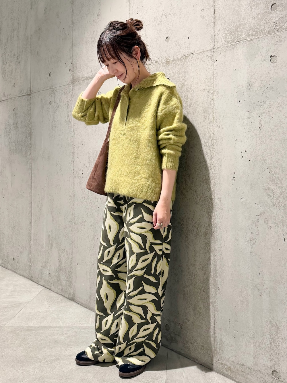 パンツの柄にも同じカラーが入っているので、まとまりのあるスタイルになります。