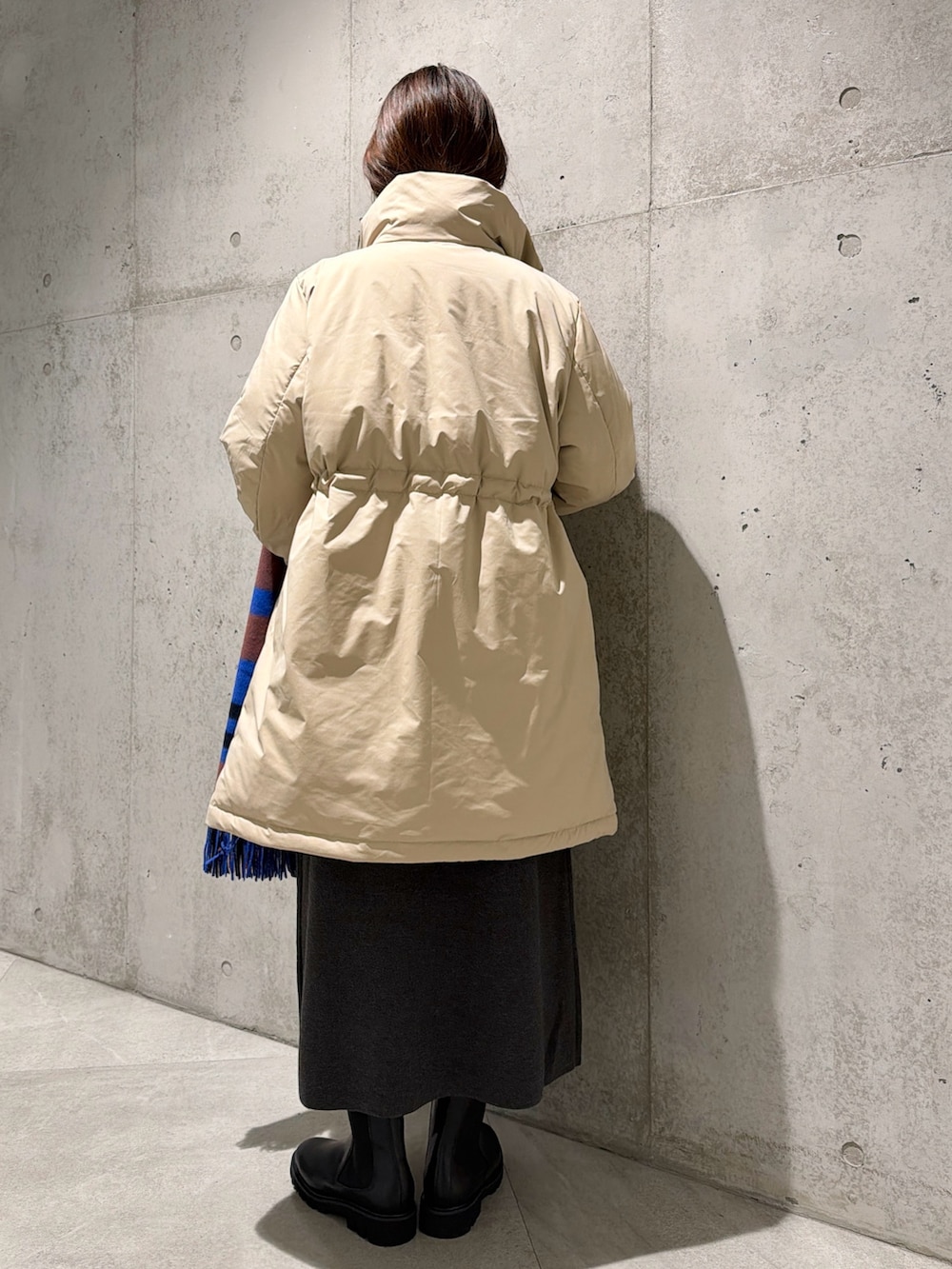 ウエストと裾のドローコードを絞ることで、シルエットに変化をつけられます。