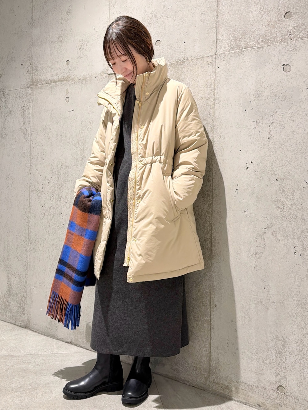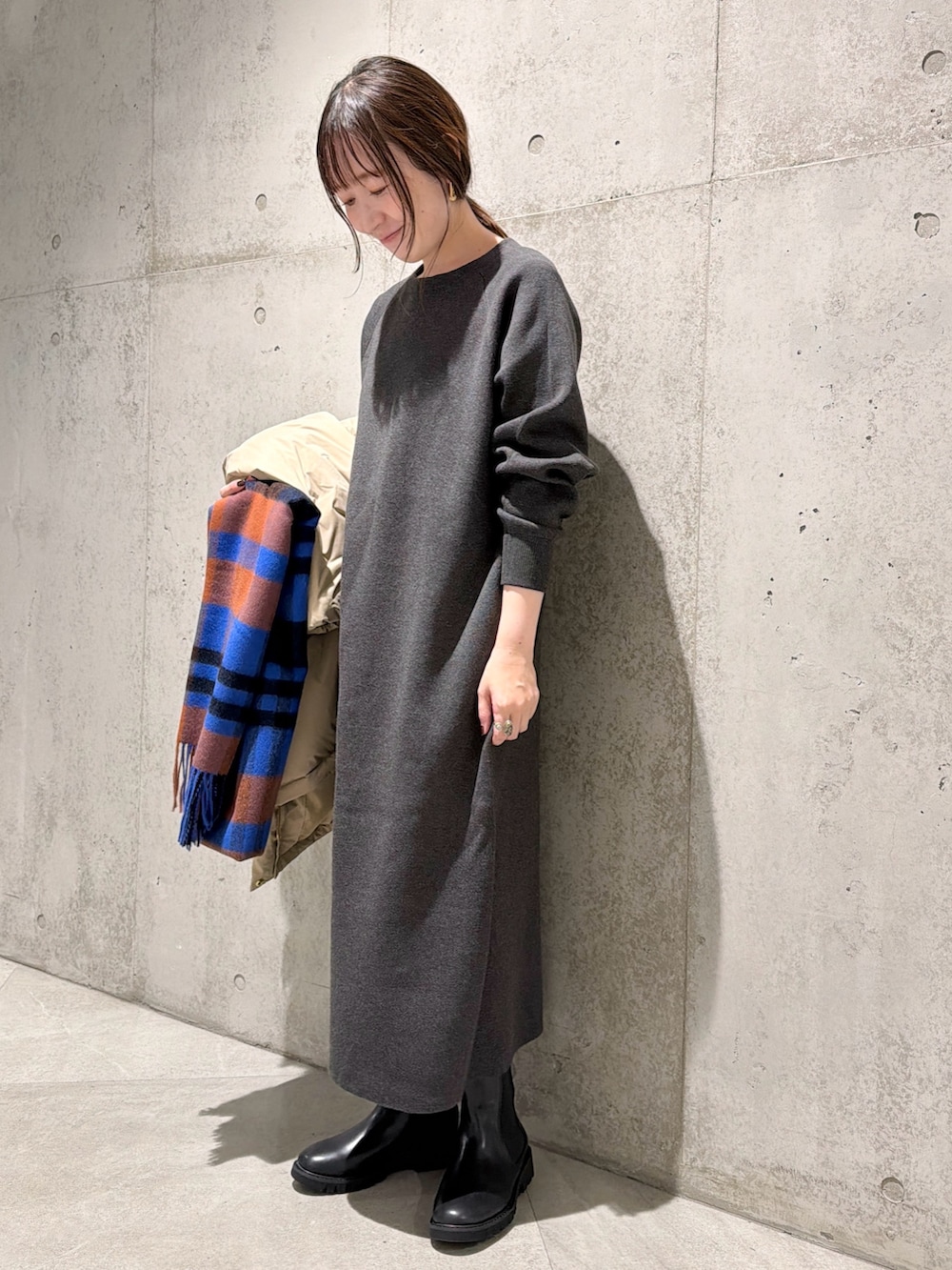 今回は、スウェットのような柔らかな着心地のシンプルなワンピースを合わせた、大人カジュアルコーディネートです。