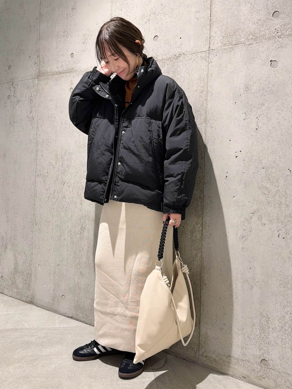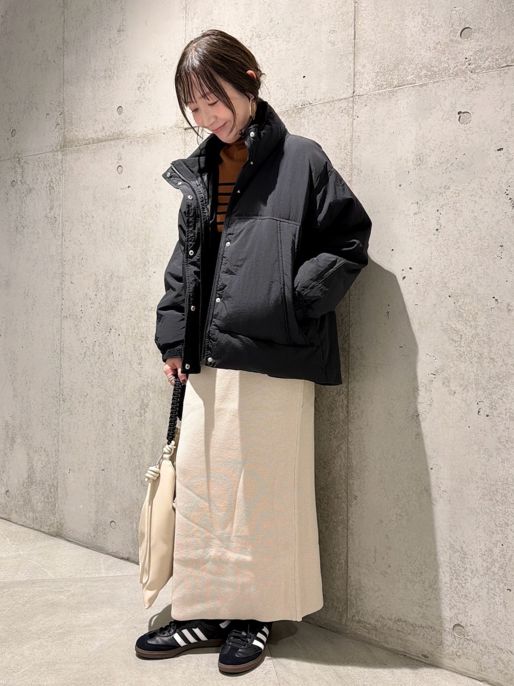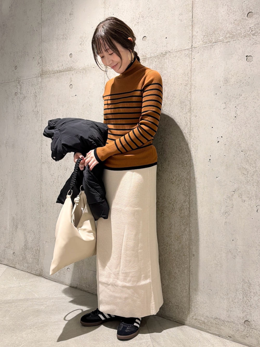 今回は、季節感のあるニットのスカートを合わせた大人カジュアルコーディネート。