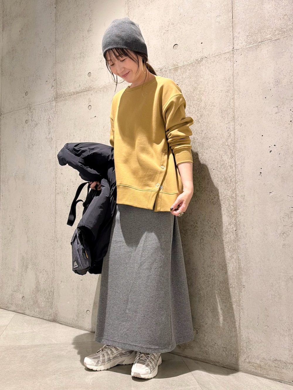 今回は、サイドのボタンデザインがポイントのスウェットと合わせた、カジュアルコーディネートです。