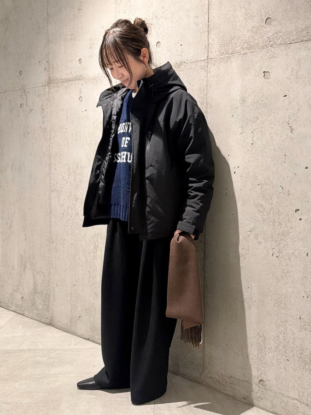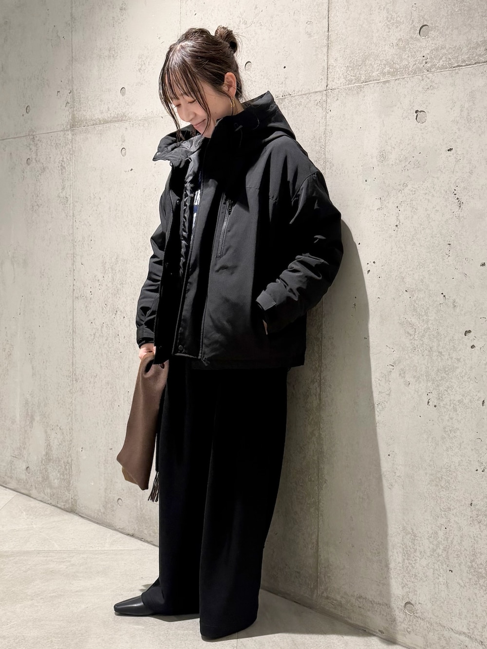 今回は、ワイドパンツと合わせたブラックコーデです。