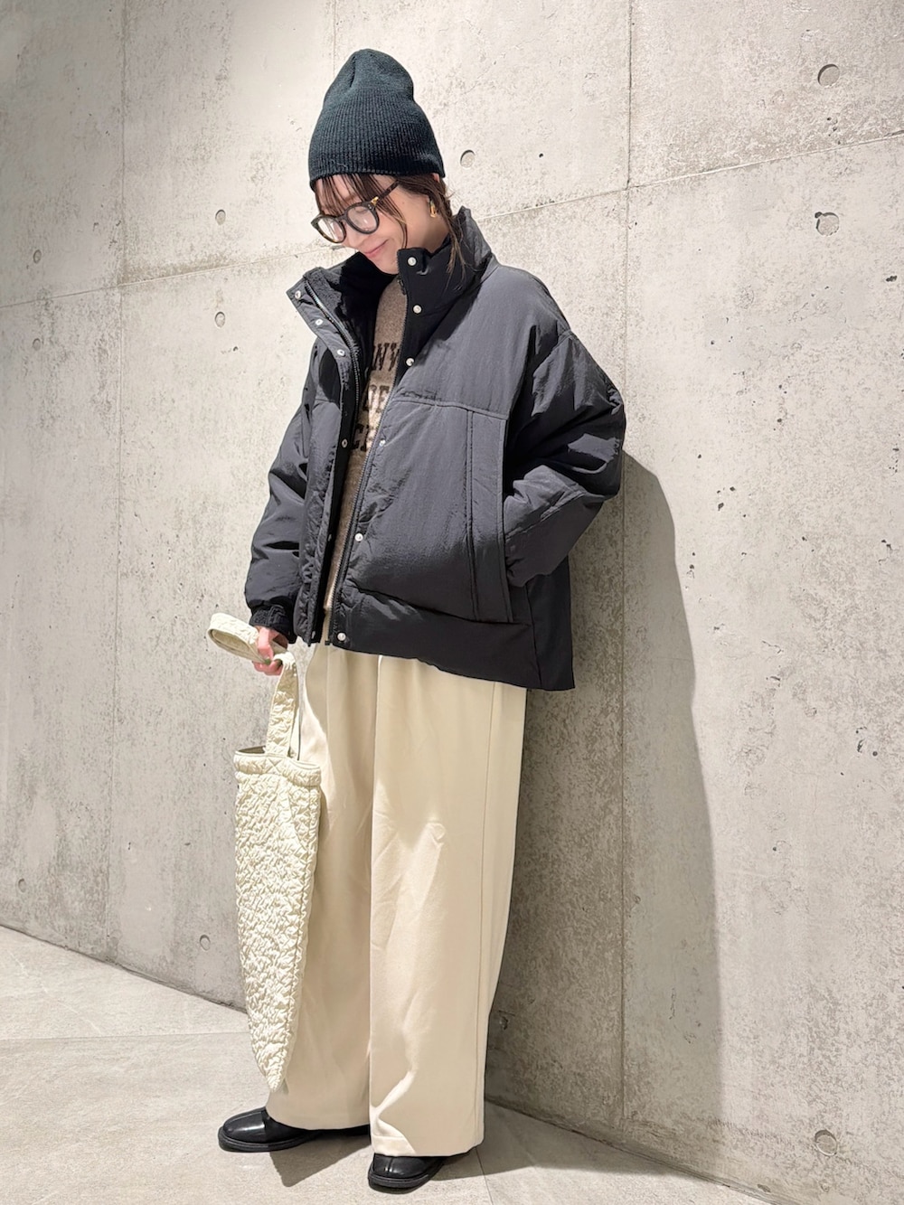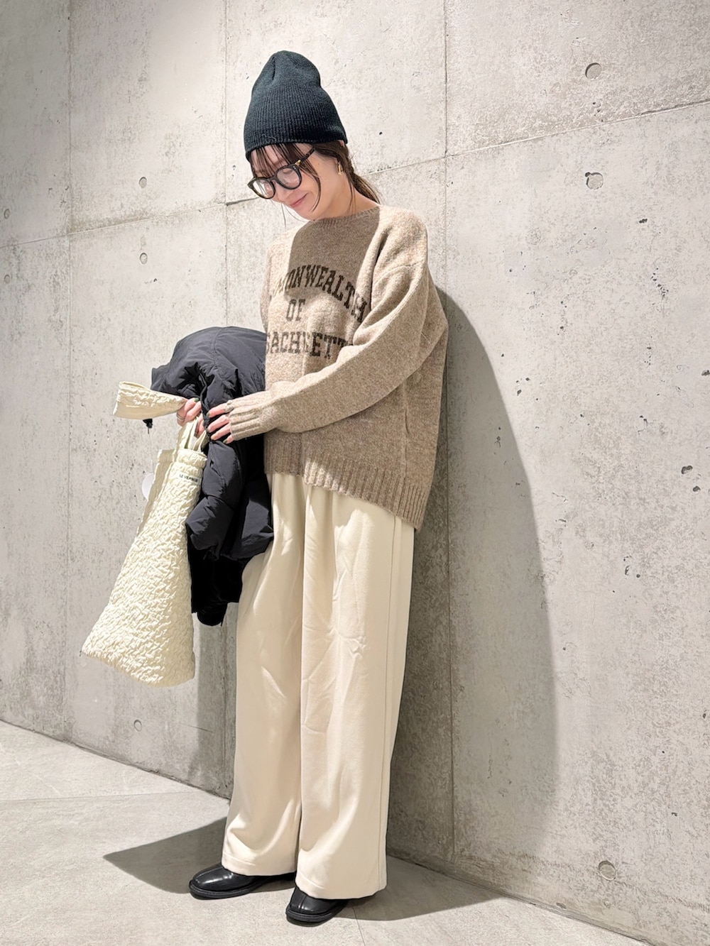 今回は、インナーとパンツは淡い色でまとめた、大人カジュアルコーディネート。
