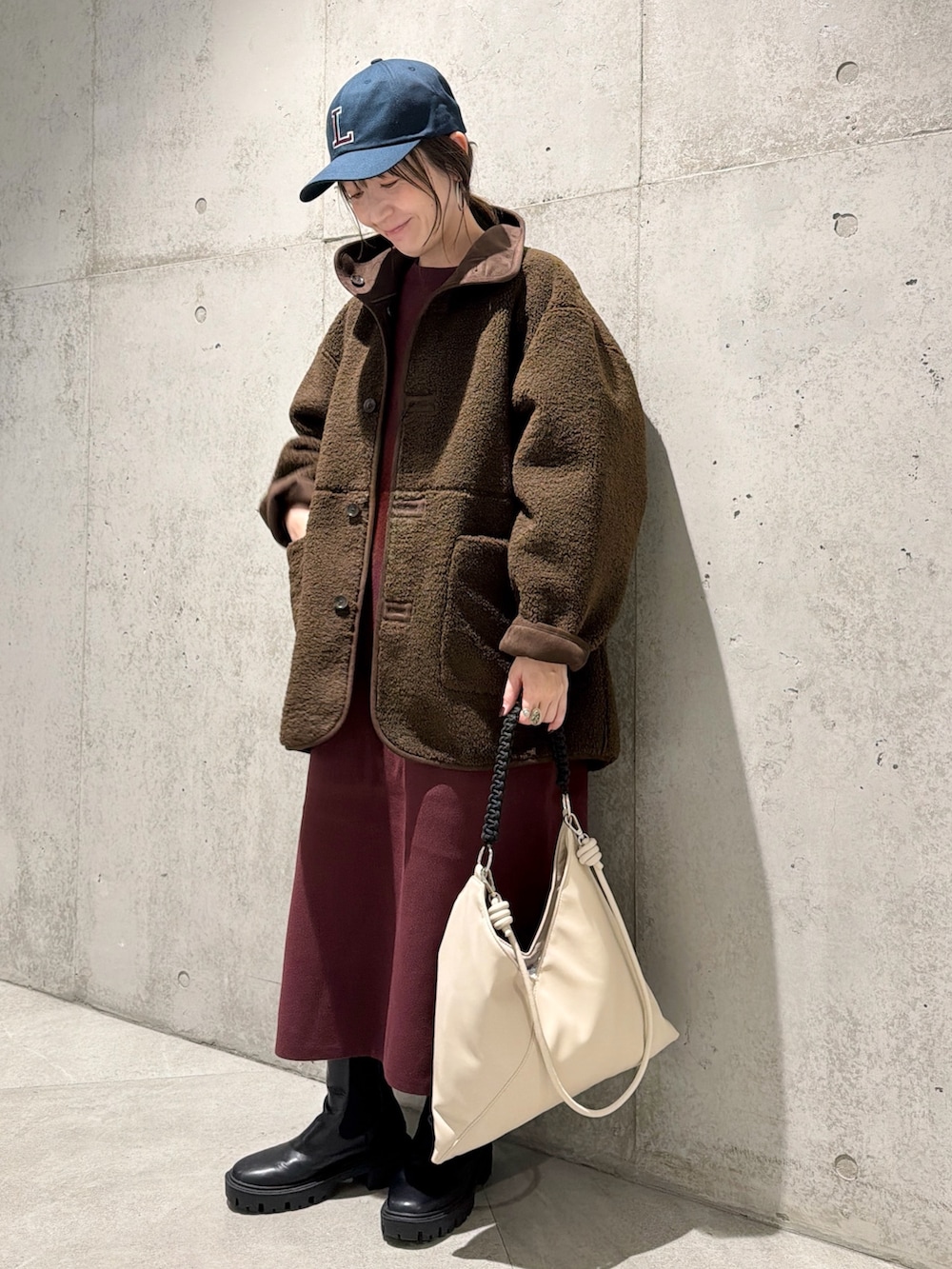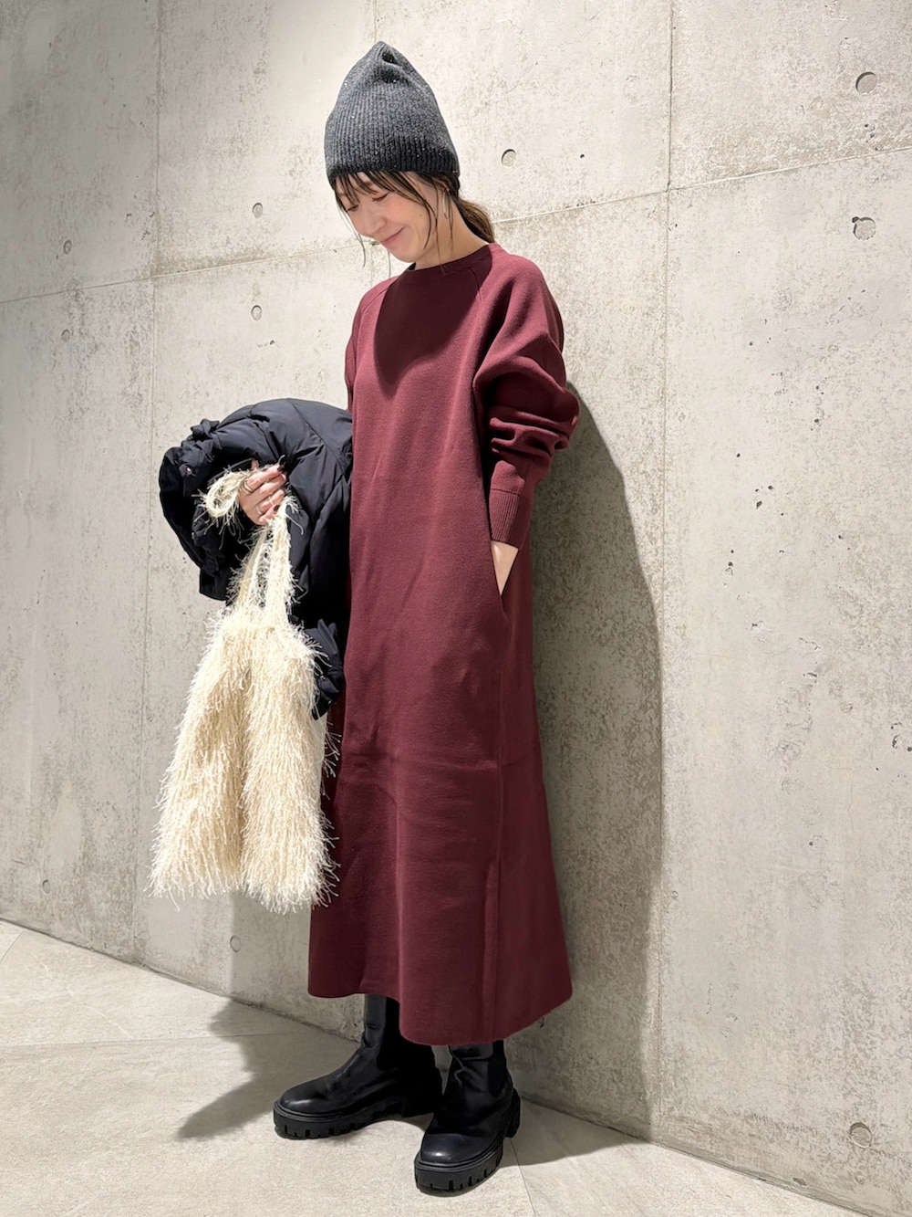 今回は、もちもちとした生地が特徴的なニットワンピースを合わせた、大人カジュアルコーディネートです。