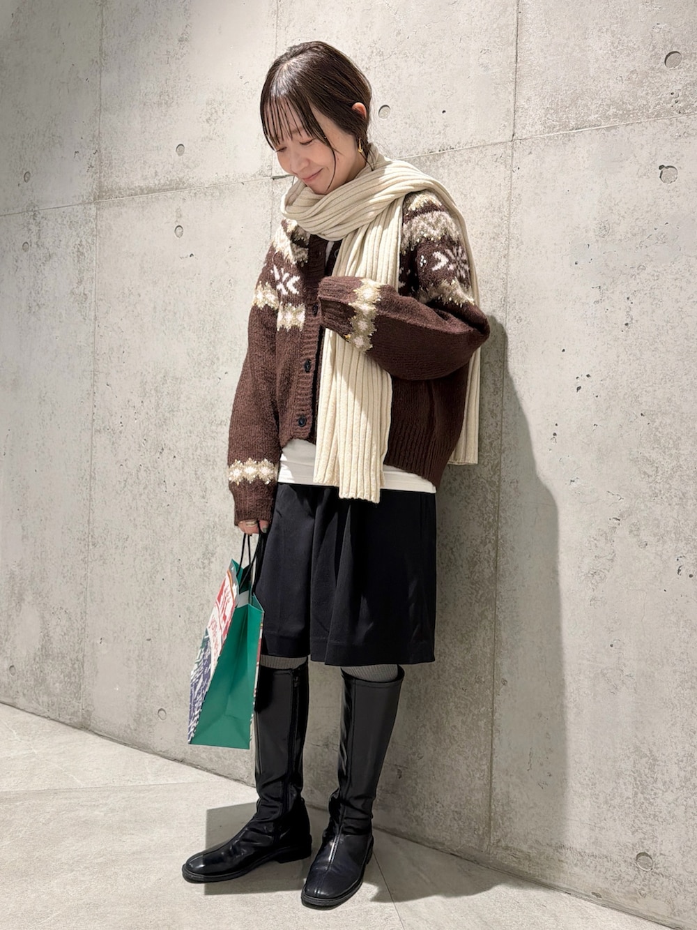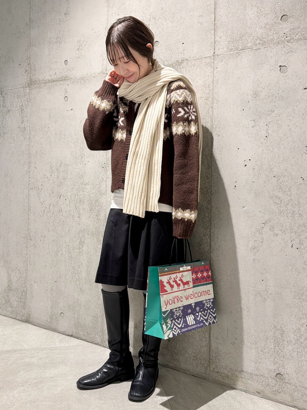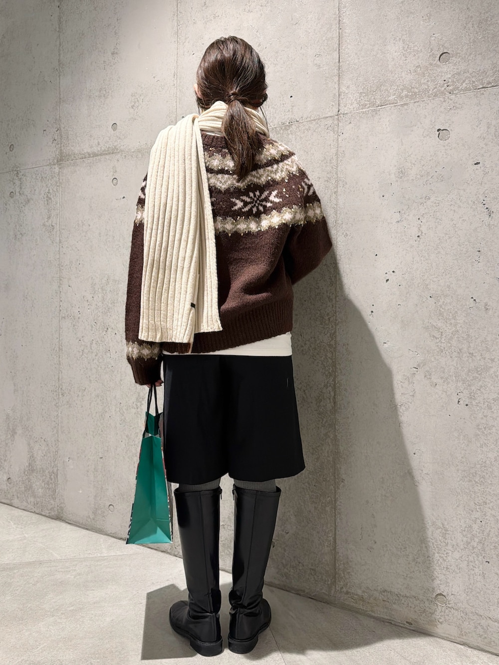 今回は、マフラーを巻いて、ホリデー感のあるスタイルにしてみました。