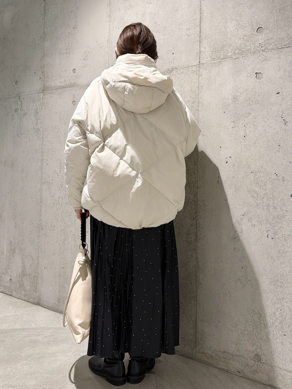 大きめのダイヤキルティングが、洗練された大人カジュアルにぴったりです。