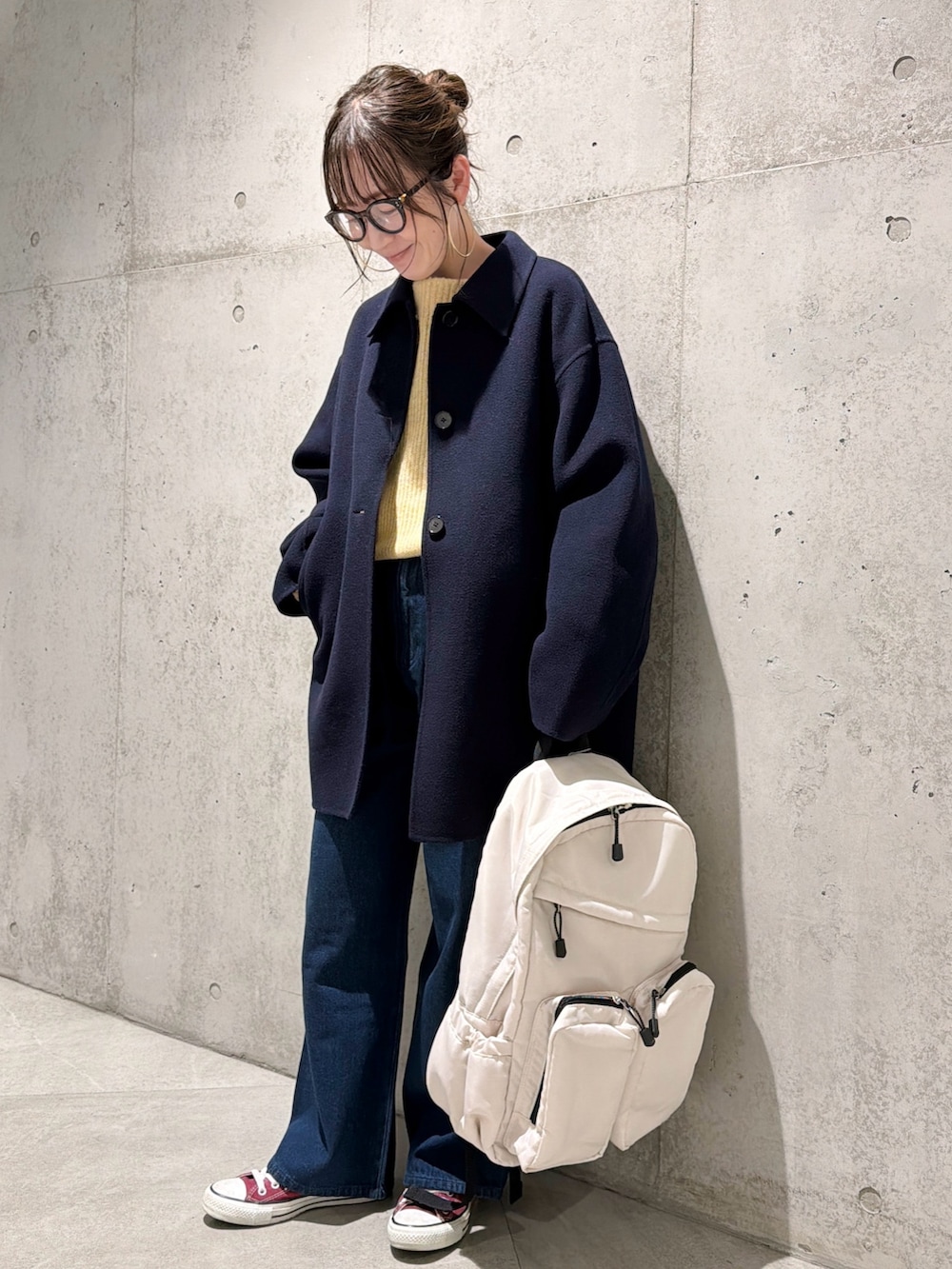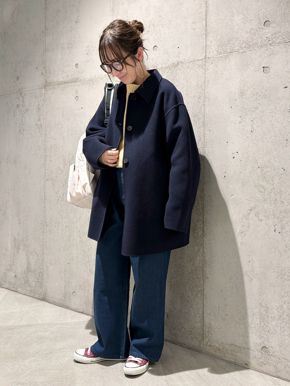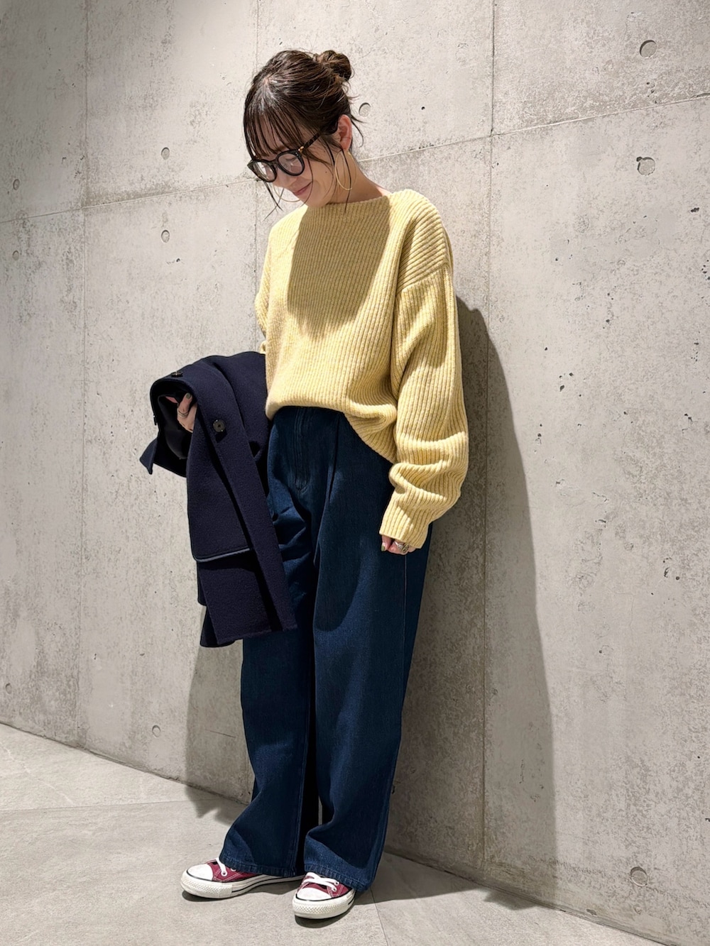 今回は、インナーをアクセントカラーにした、カジュアルコーディネートです。