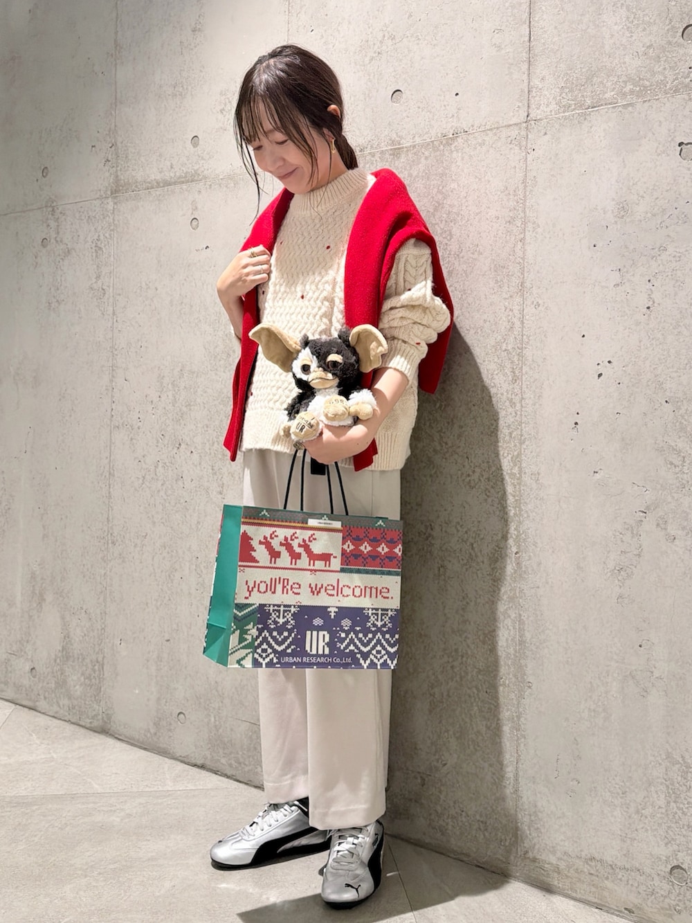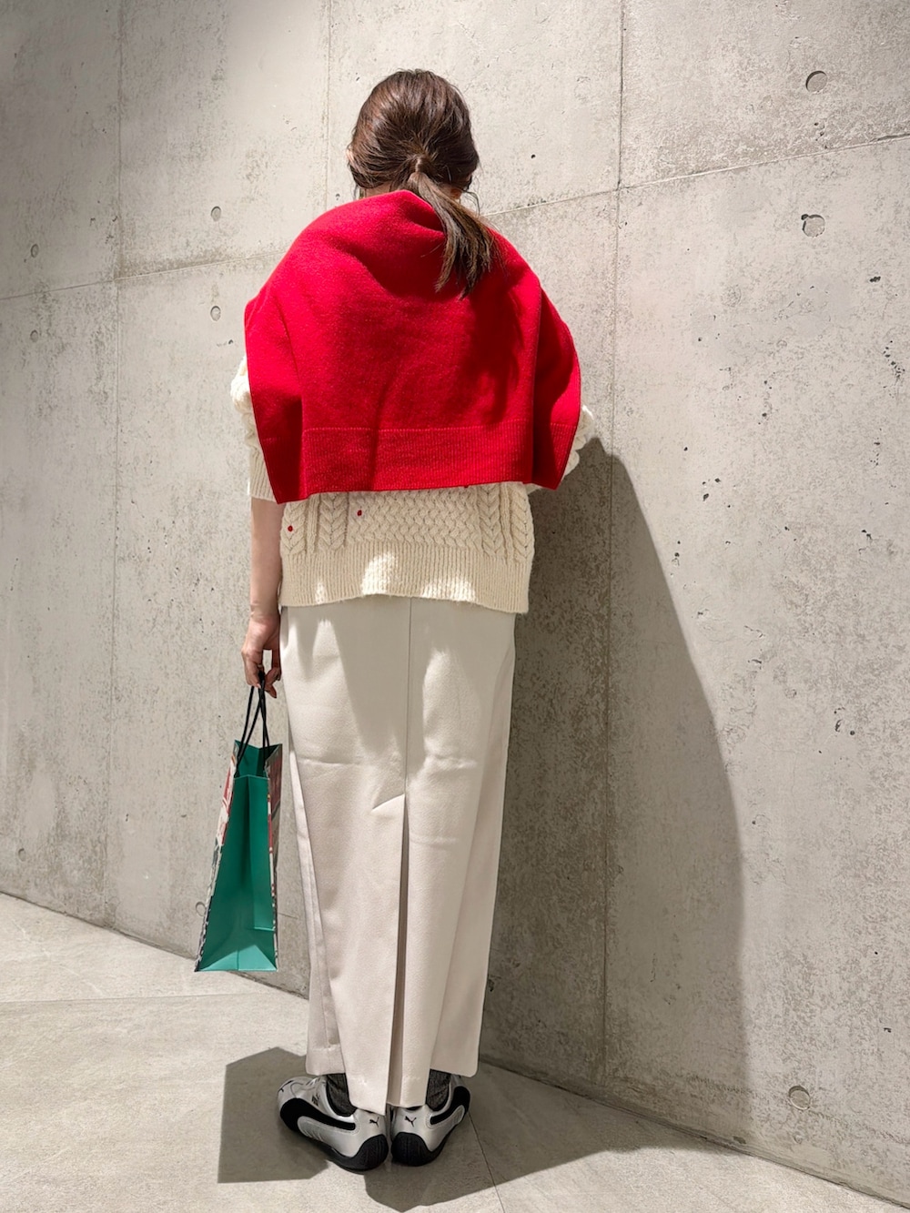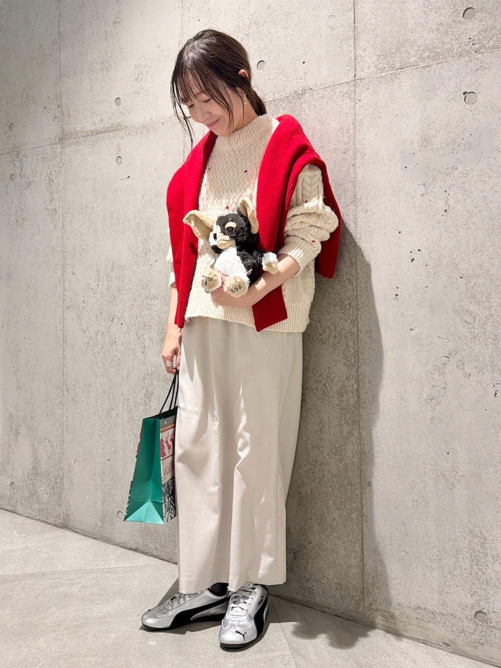 今回は、ホワイトコーデに、赤を取り入れてクリスマス感を出してみました。