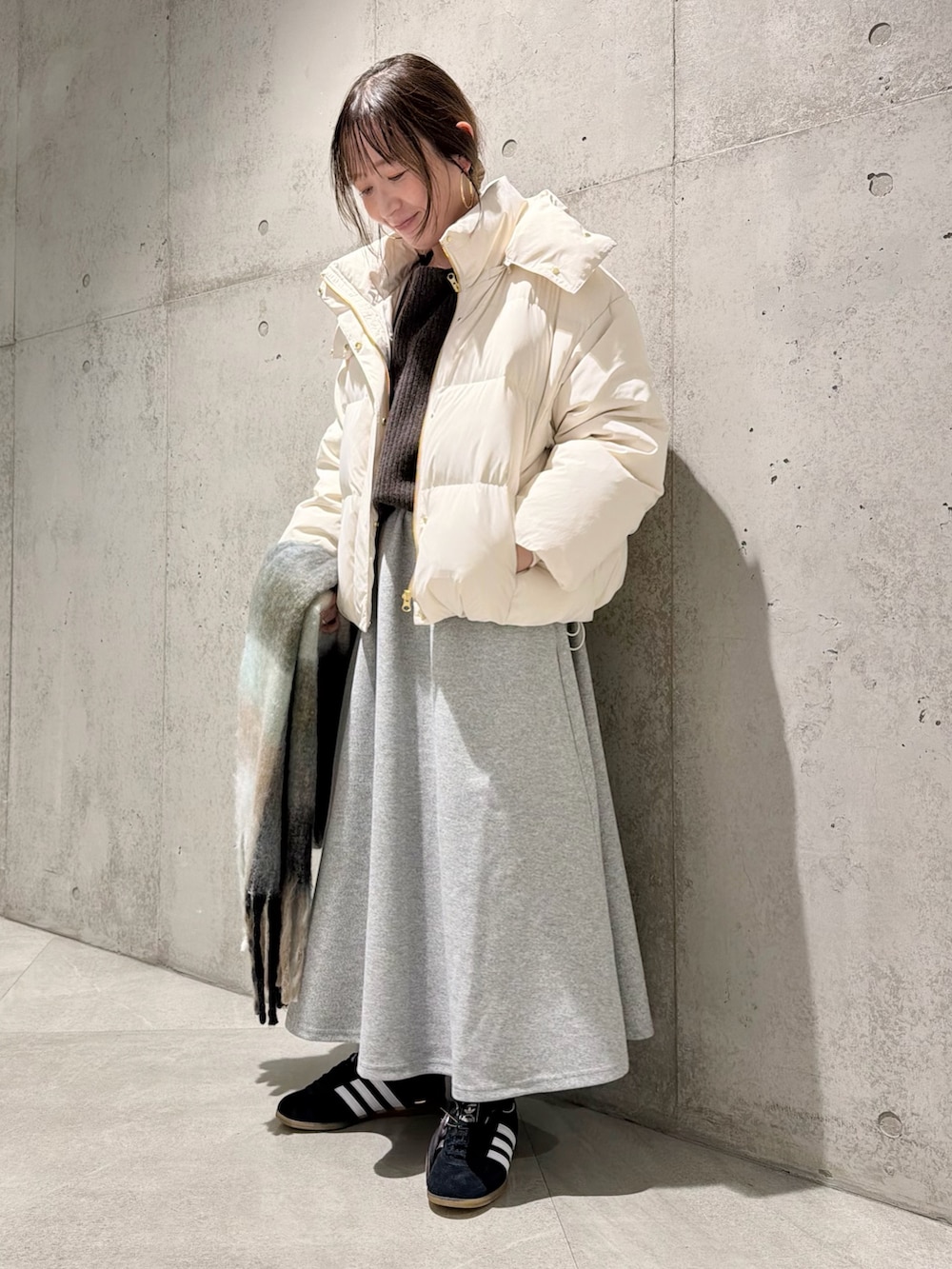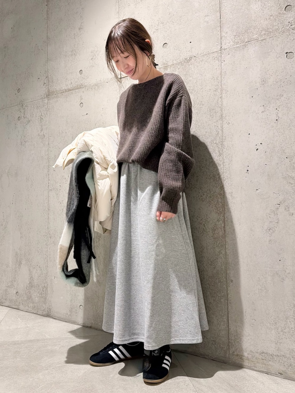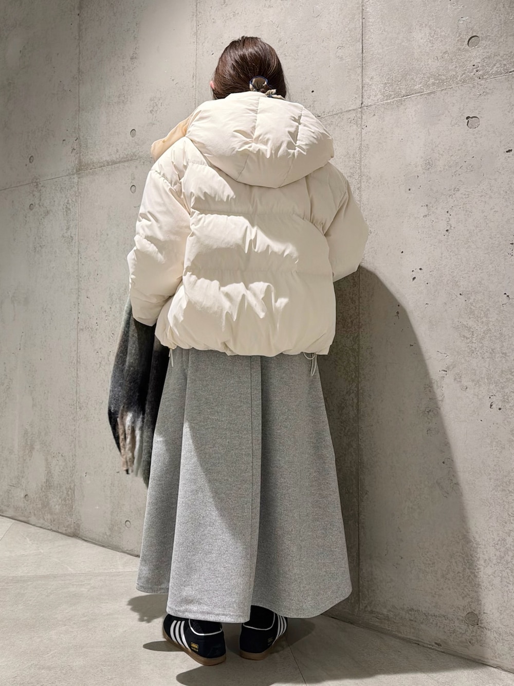 スカートは、身体のラインを拾わないシルエットで、ウエストもゴム仕様になっています。