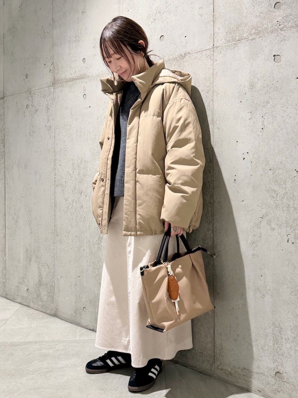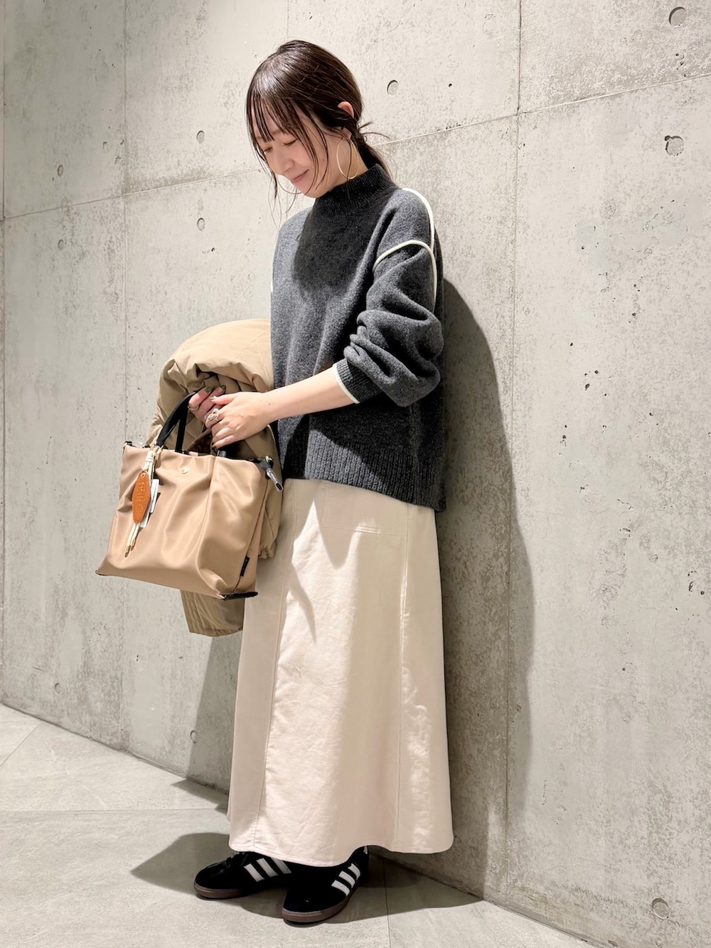 今回は、ホワイトのコーデュロイスカートを合わせた、大人カジュアルコーディネートです。