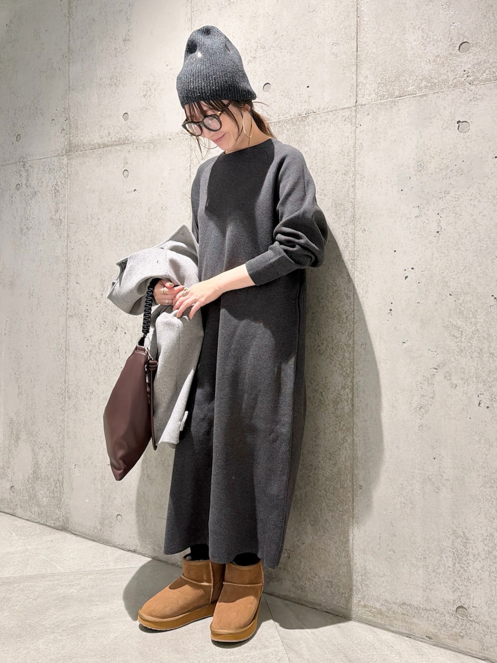 今回は、ニットワンピースを合わせた、大人カジュアルコーディネートです。