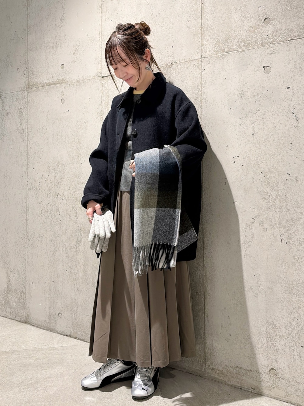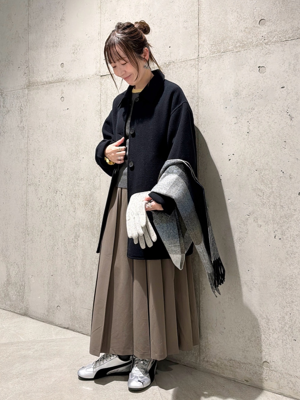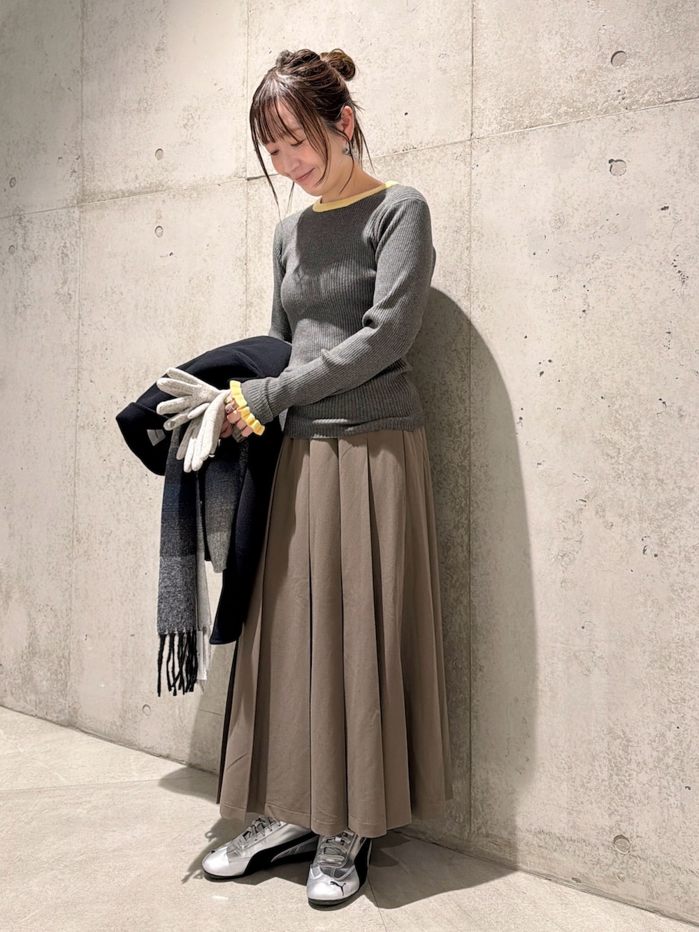 今回は、大人カジュアルにぴったりなプリーツスカートと合わせた、キレイめカジュアルコーディネートです。