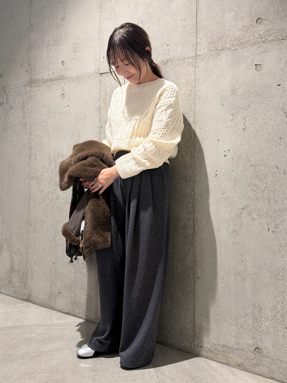 今回は、リラックス感のあるワイドパンツと合わせた、大人カジュアルコーディネート。