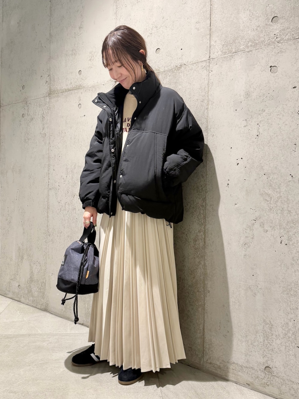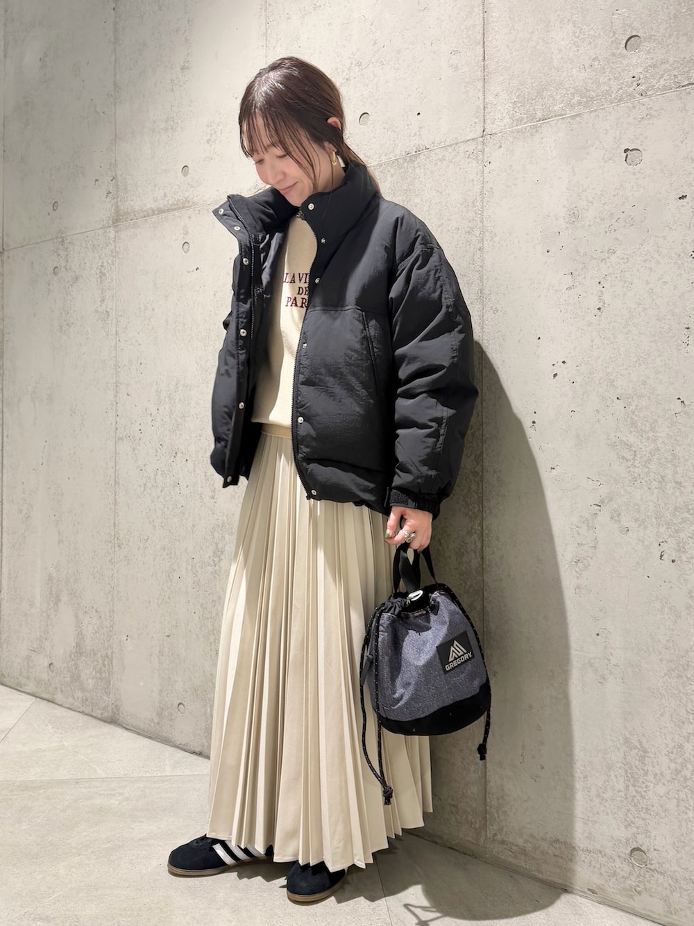 今回は、プリーツスカートと合わせて、フェミニンさをプラスしたキレイめカジュアルコーディネート。