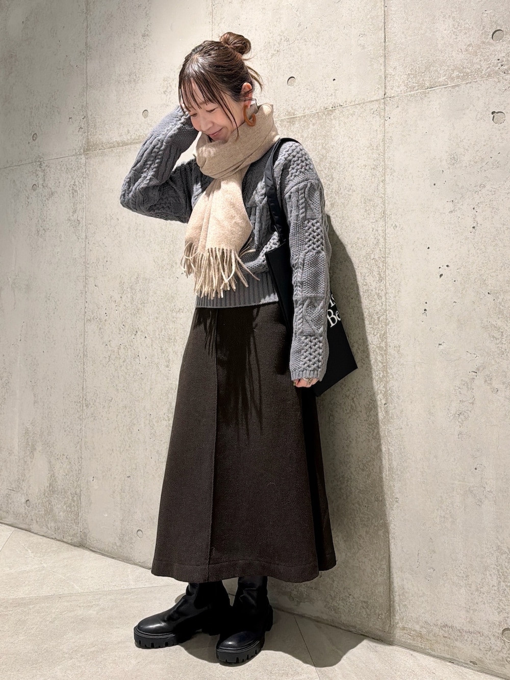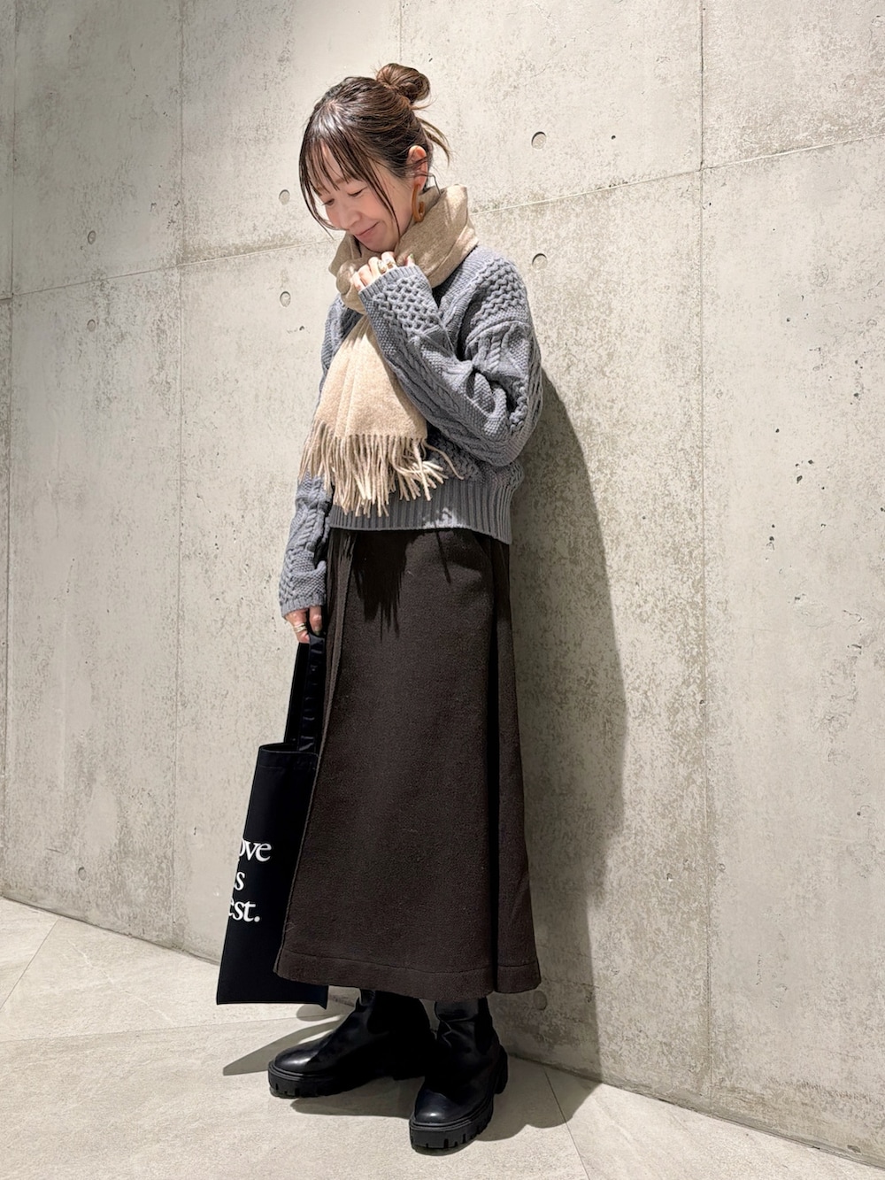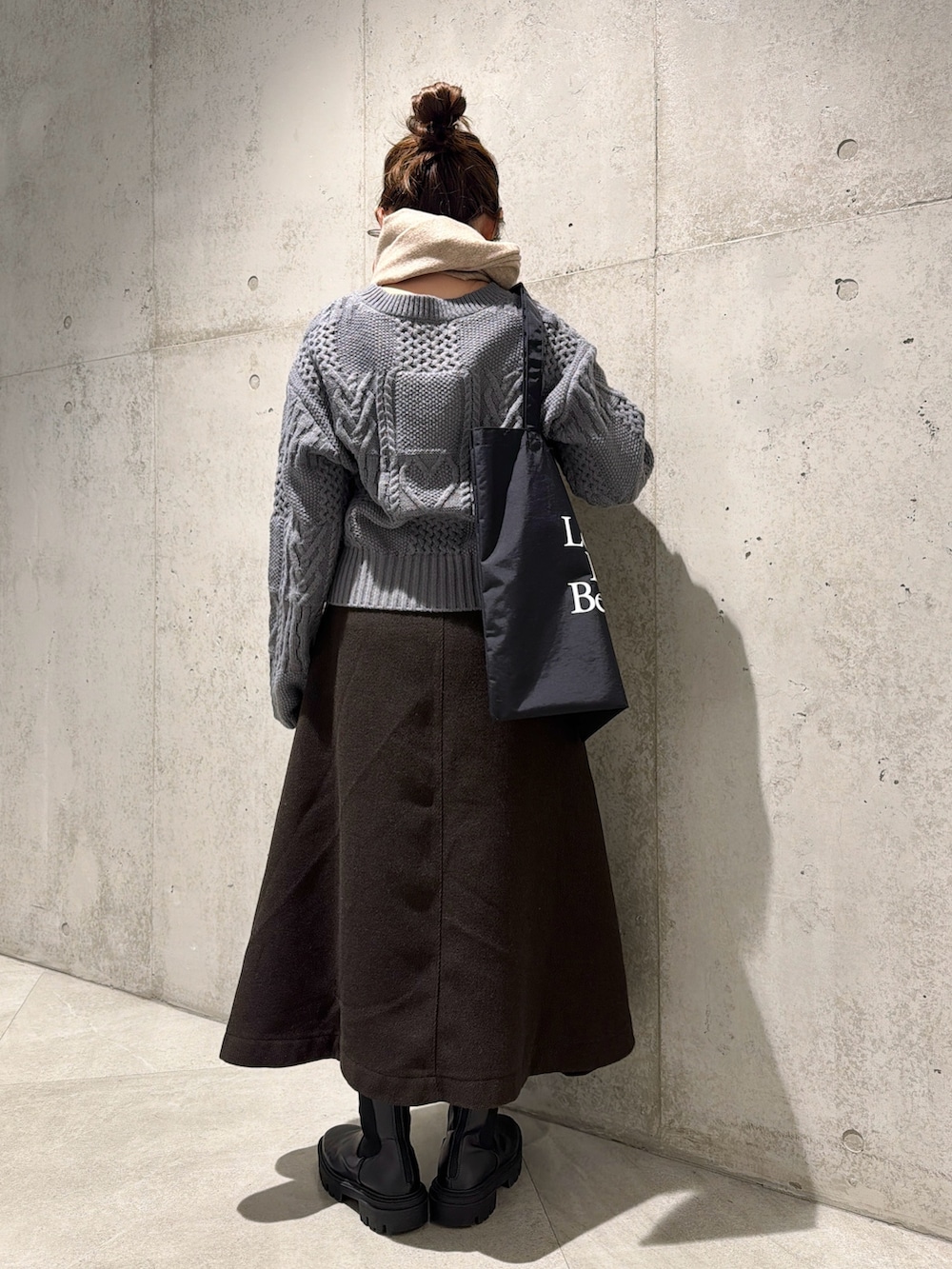 今回は、温かみのあるツイード素材のフレアスカートと合わせて、冬らしいコーディネートにしてみました。