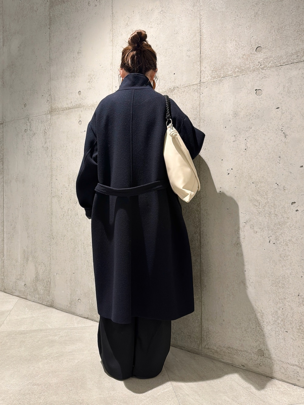 大きめのスタンドカラーが、お顔まわりをすっきりと見せてくれ、小顔効果も期待できます。