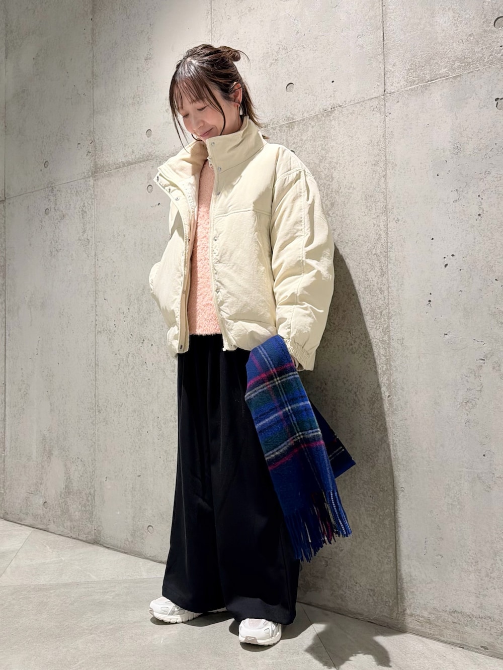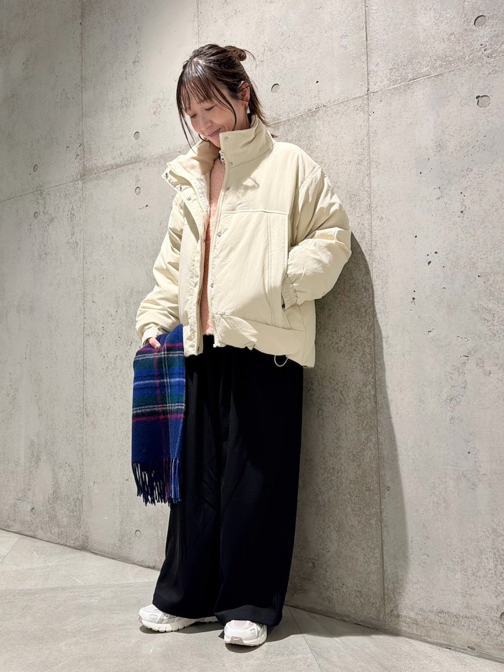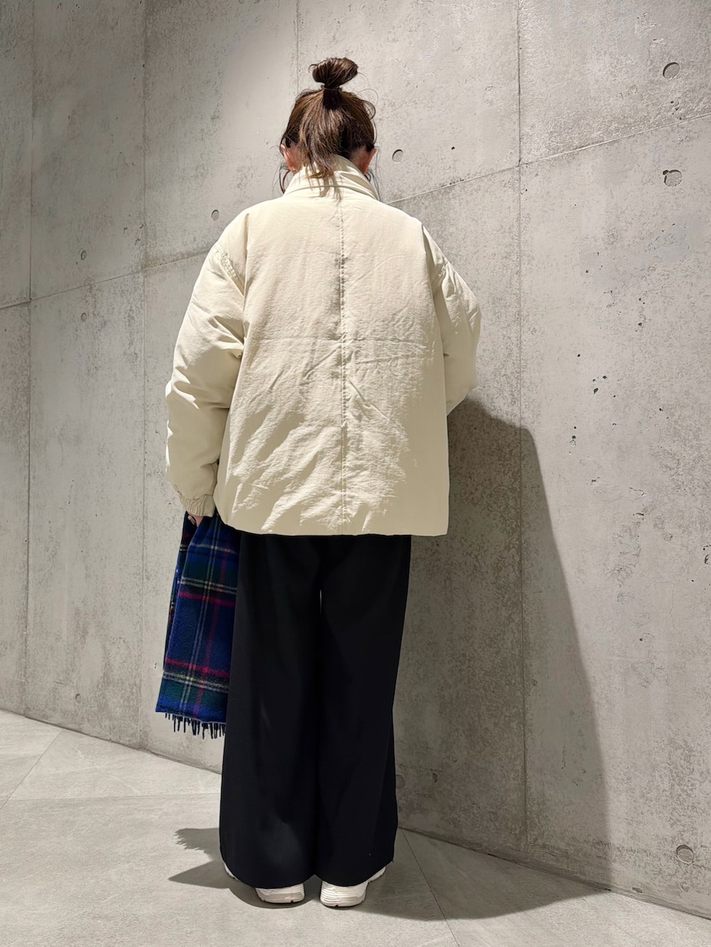 Sonny Labelウールカシミヤチェックワイドマフラー- 着用カラー: