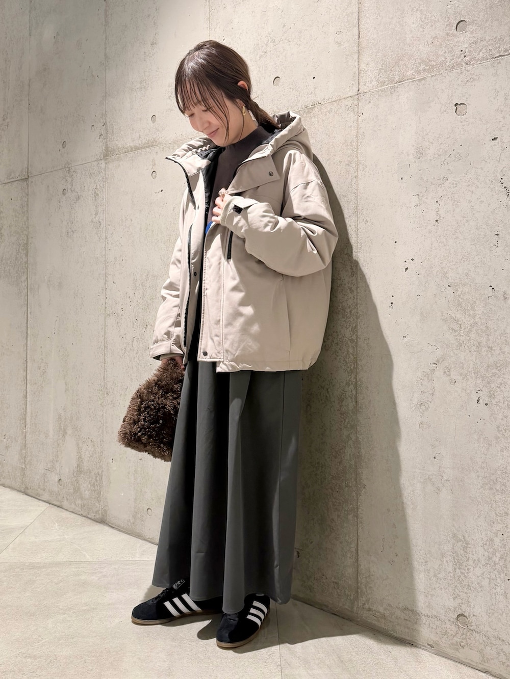 ボリュームのあるフードで小顔効果も期待できます。