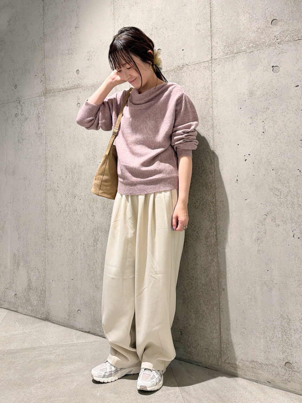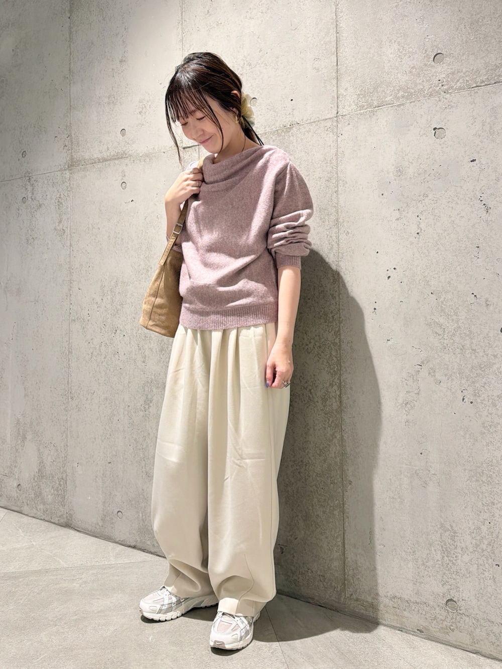 今回は、コクーンシルエットがポイントの、ゆるめなパンツと合わせた、大人カジュアルコーディネート。