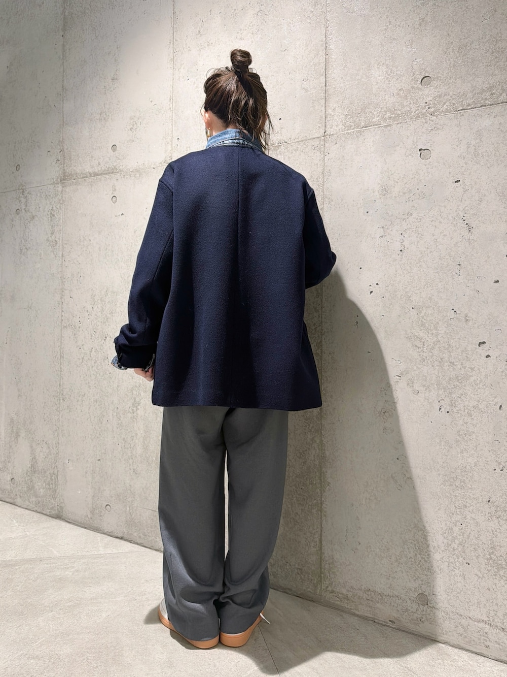 タートルネックを合わせたり、ストールやマフラーを主役にしたスタイルにも相性抜群で、顔まわりをすっきり見せたい方にもおすすめです。