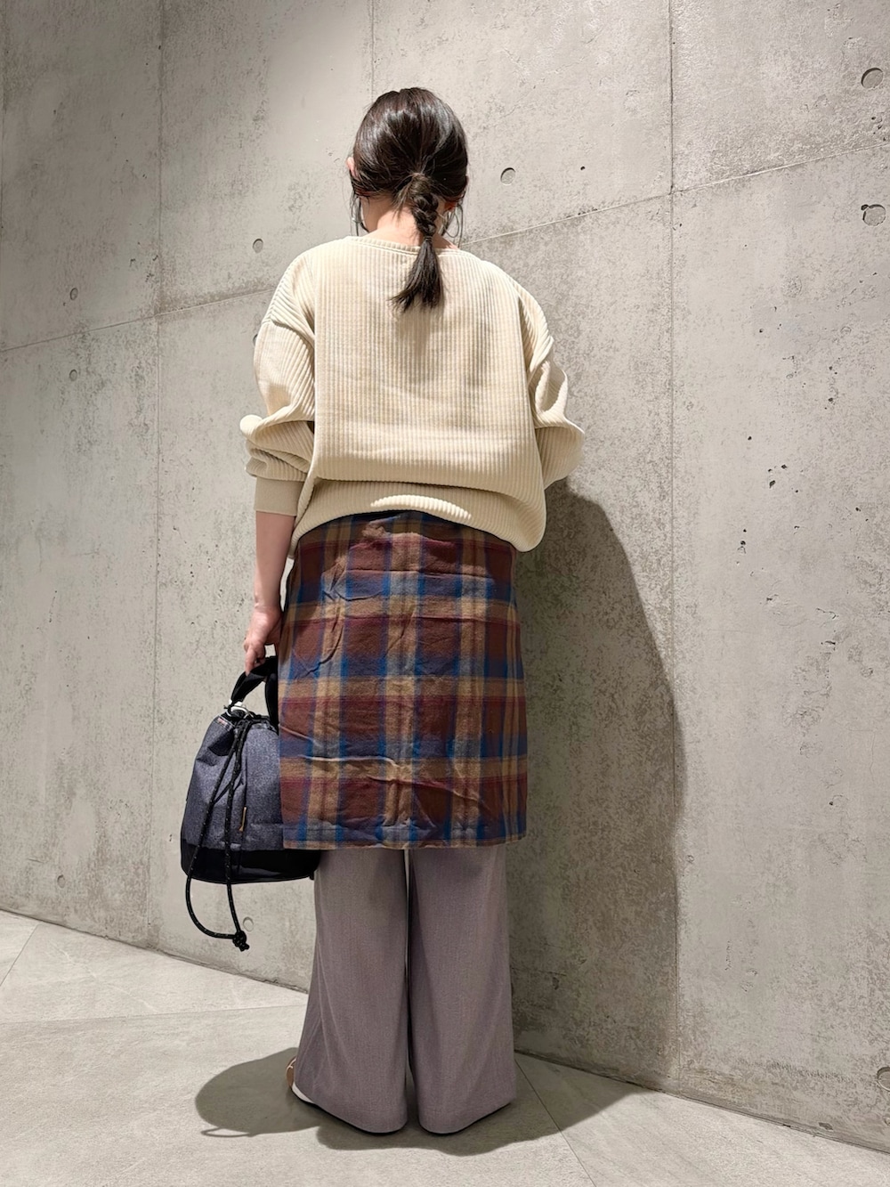 今回は、チェック柄のシャツを腰巻きにしてアクセントにした、カジュアルコーディネート。