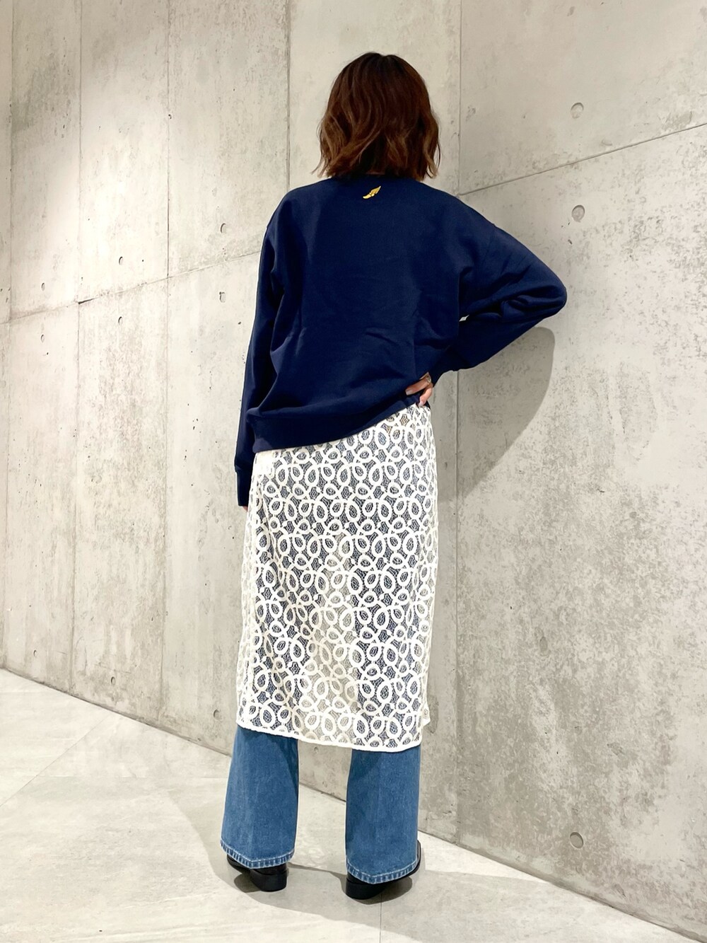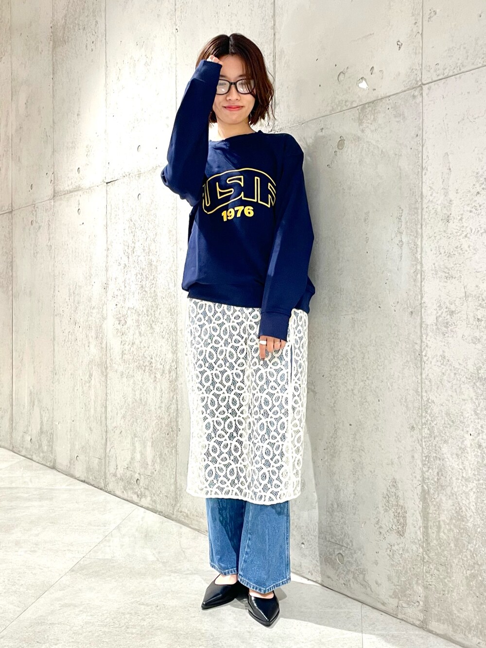 デニムとのワンツーコーデも可愛いですが、今回はURのレーススカートを合わせてレディライクにしてみました。