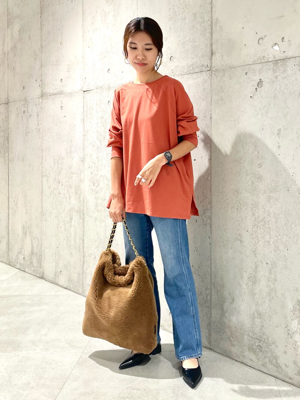 ファーのバッグをポイントにすると、季節感がグッと出ますね^ ^