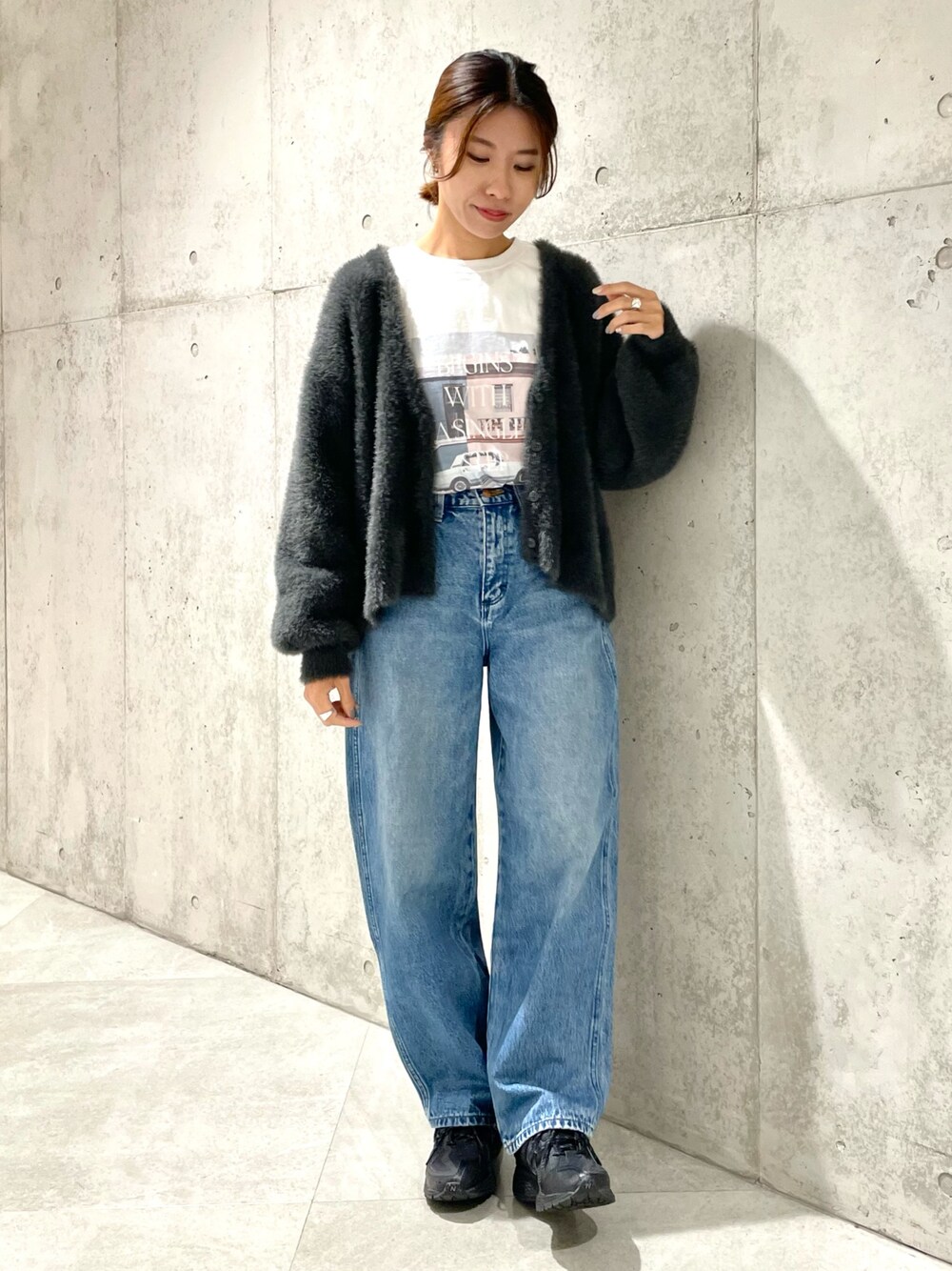 ショート丈&ボリューム袖は甘くなりがちなので、今回はフォトTとデニムでカジュアルにしてみました。