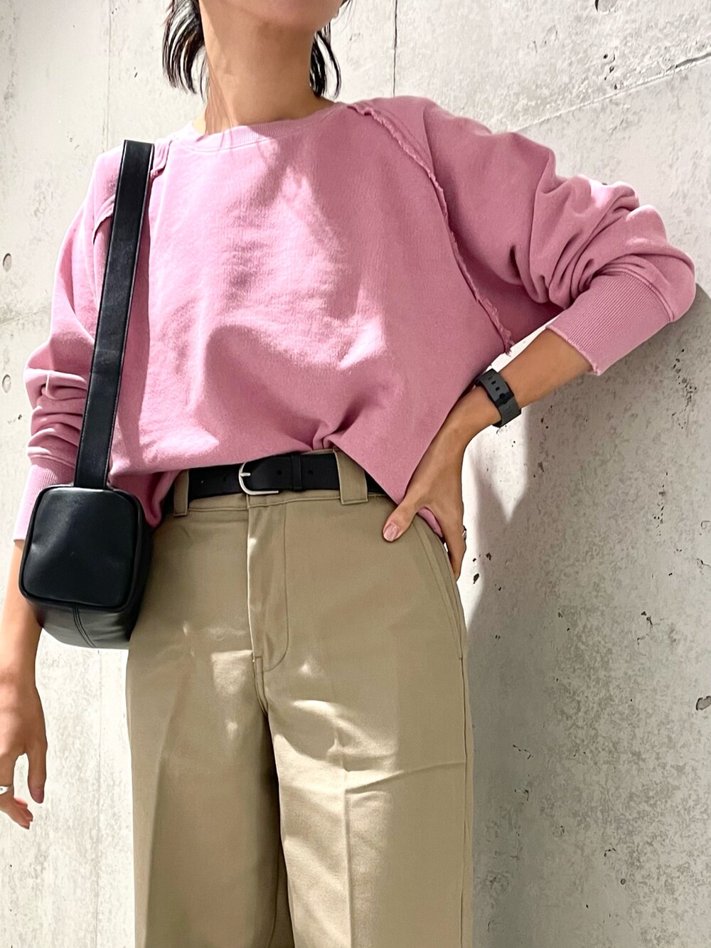 ベリー系ピンクのスウェットは、カジュアルながら女性らしくて推しアイテムです♡