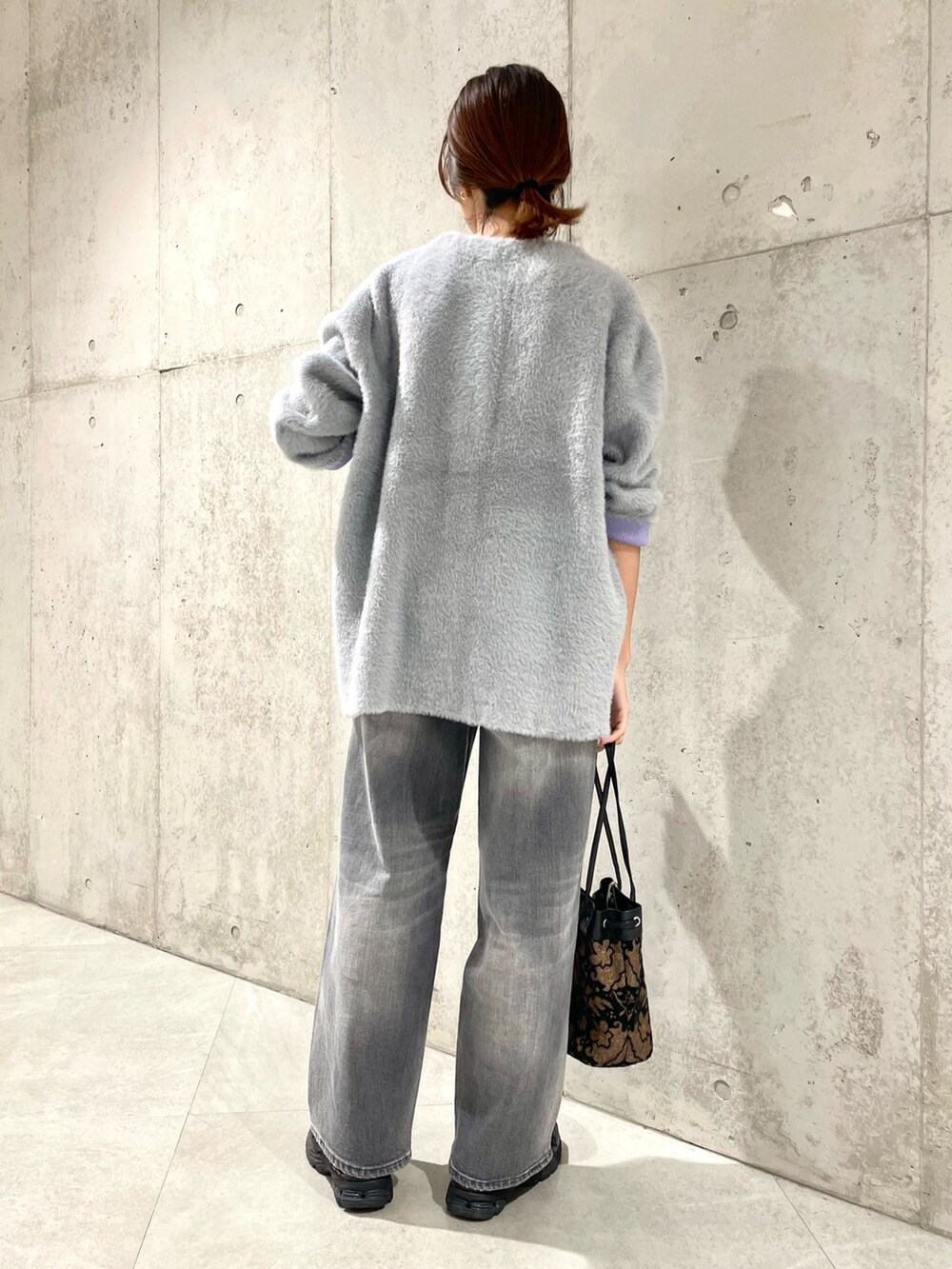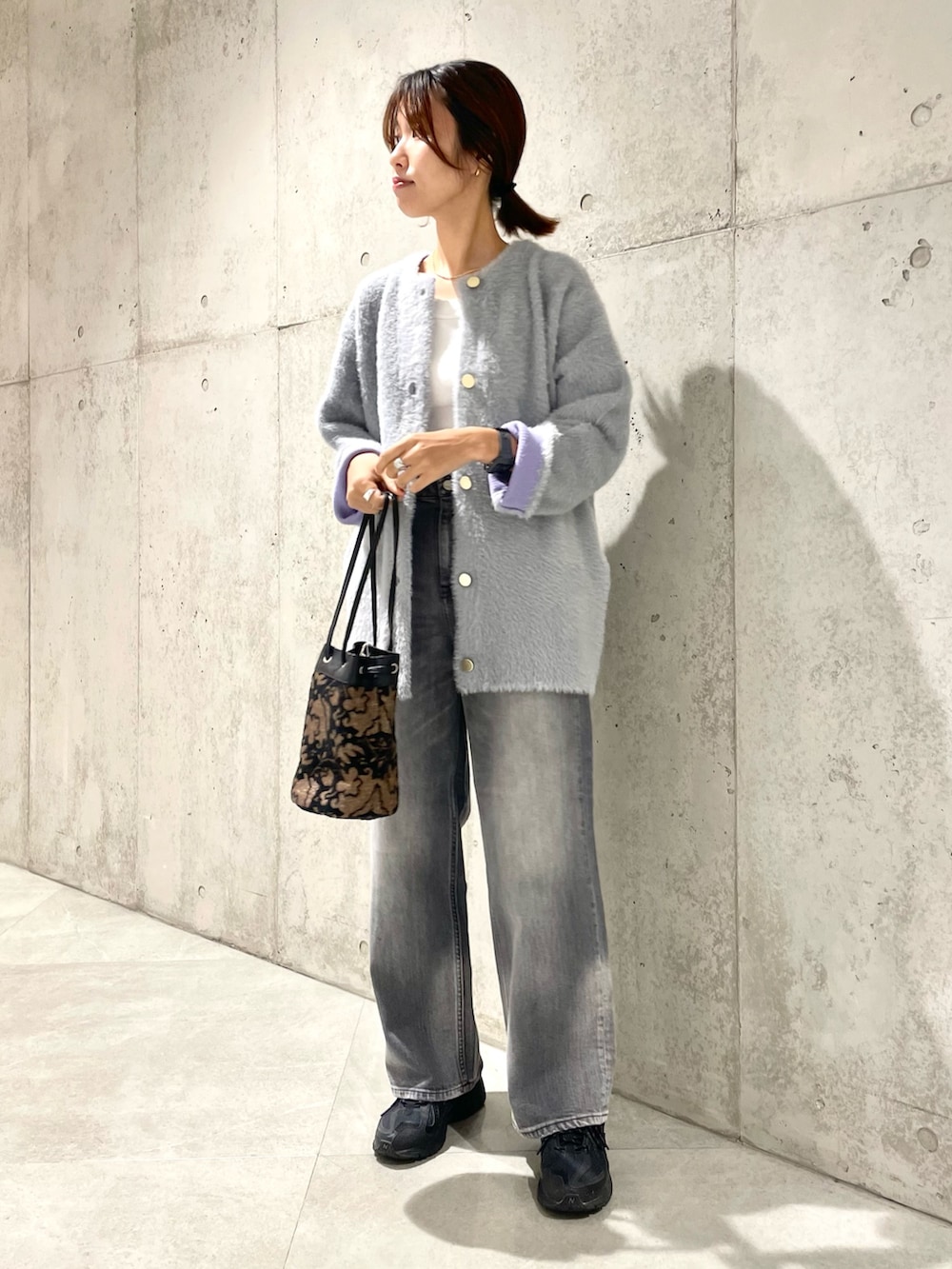 カーディガンはサラッと羽織れて、ゴールドのボタンが上品な印象です。