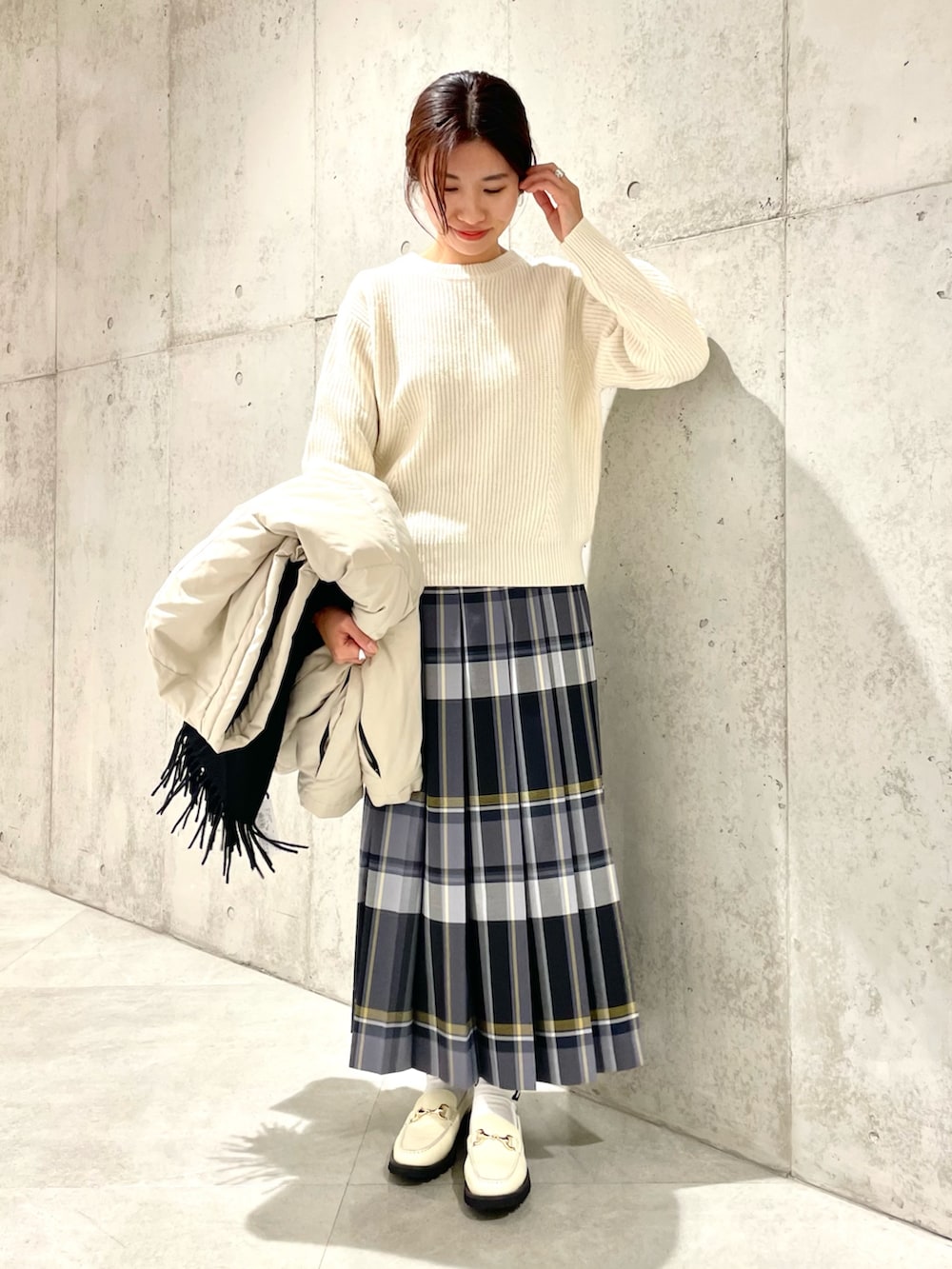 スカートはプリーツの収まりと落ち感がとても綺麗でオススメ。