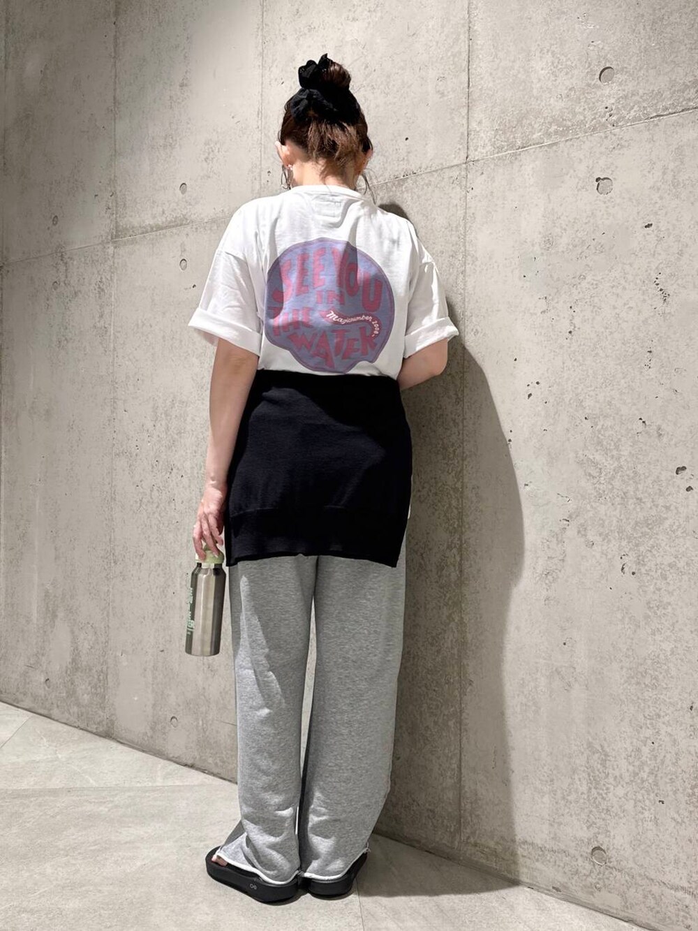 シンプルなフロントと大胆なバックプリントのバランスがポイントです。