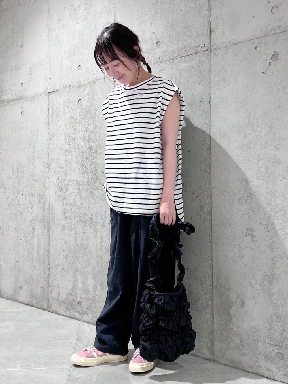 足元は、コンバースのピンクをアクセントにしてみました。