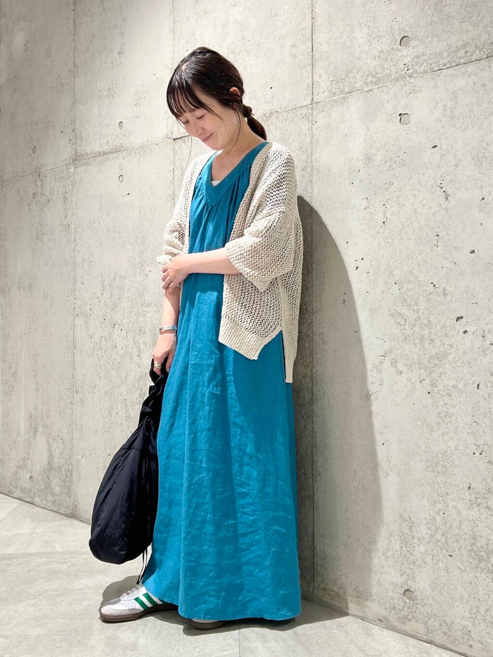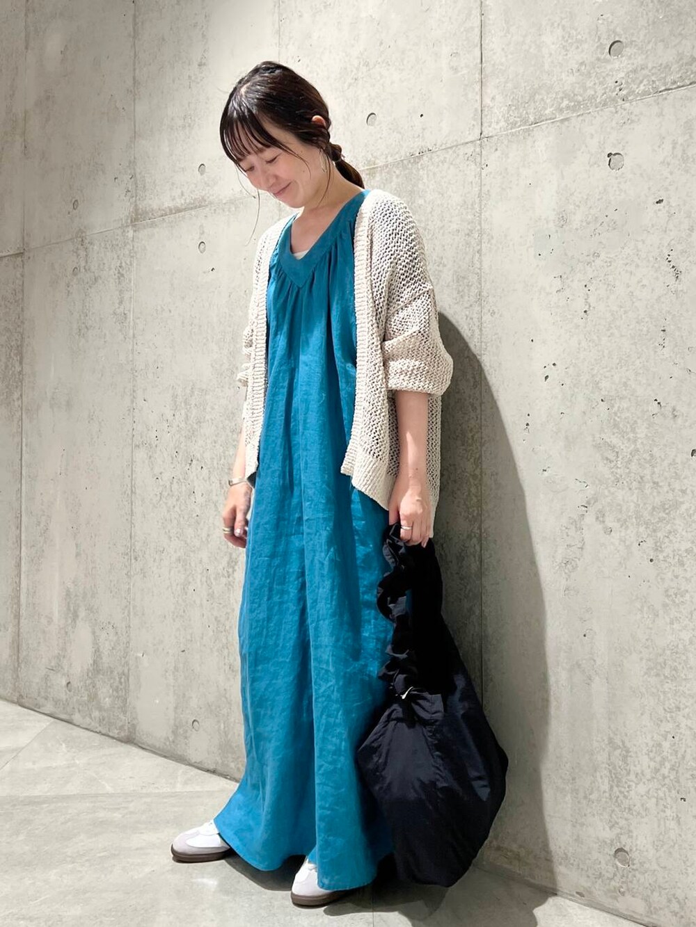 今回は、主役になる鮮やかなブルーがポイントの、リネンワンピースと合わせました。