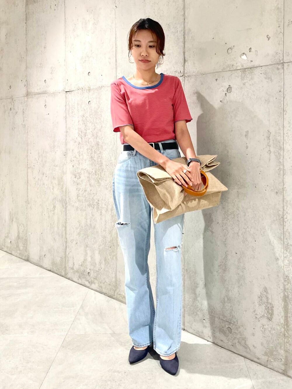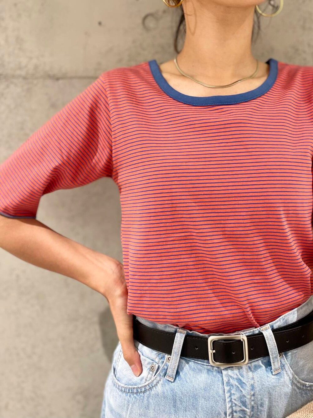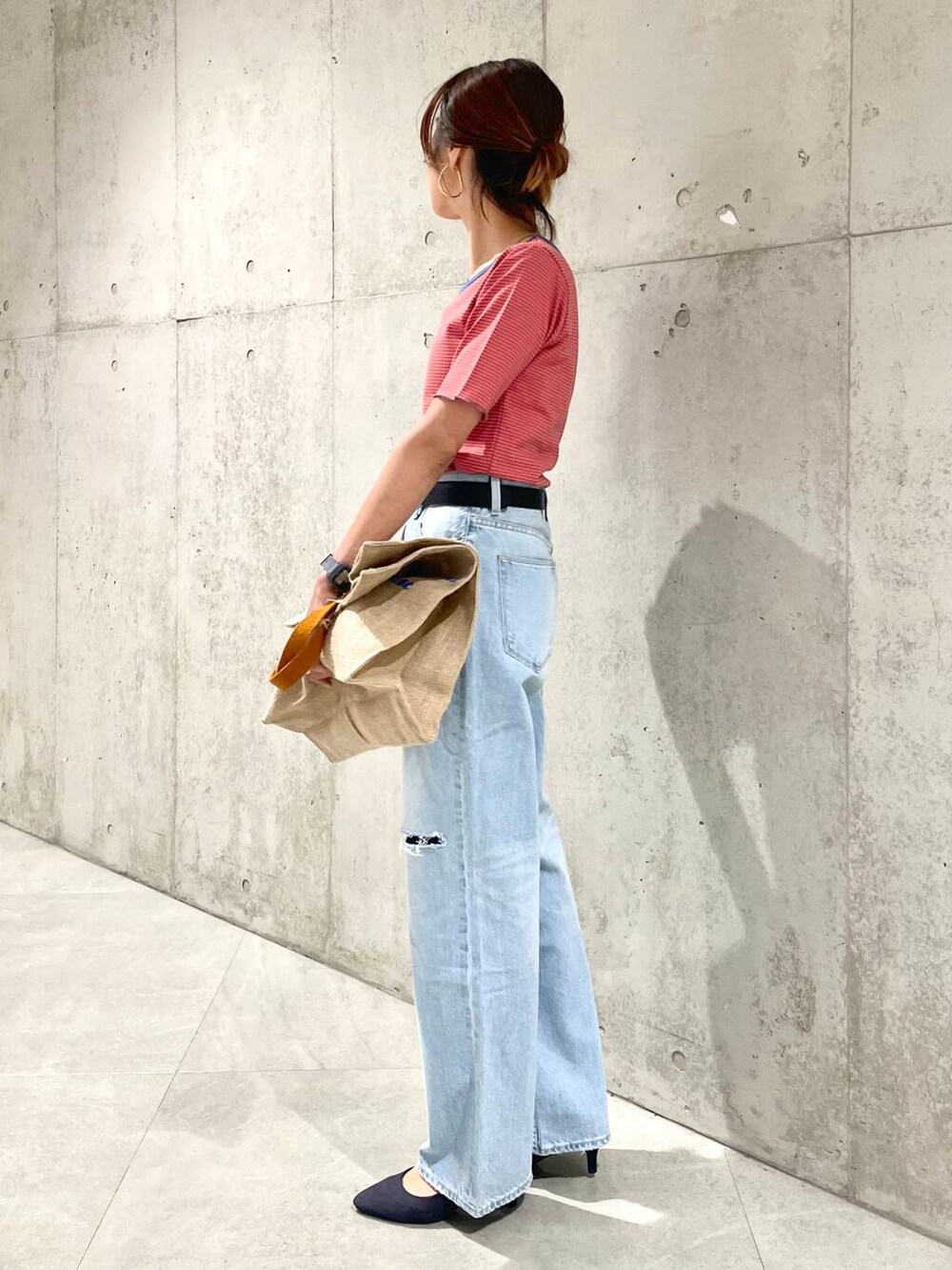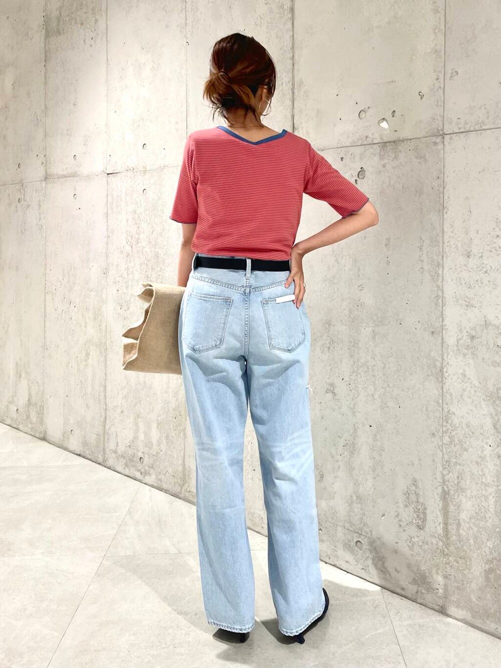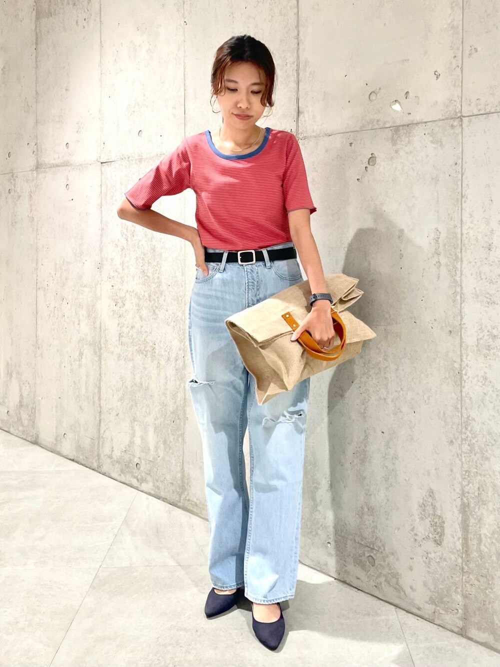 クラッシュデニムとのシンプルコーデには、ベルトやヒールで全体を引き締めてあげるとスッキリ見えます^ ^